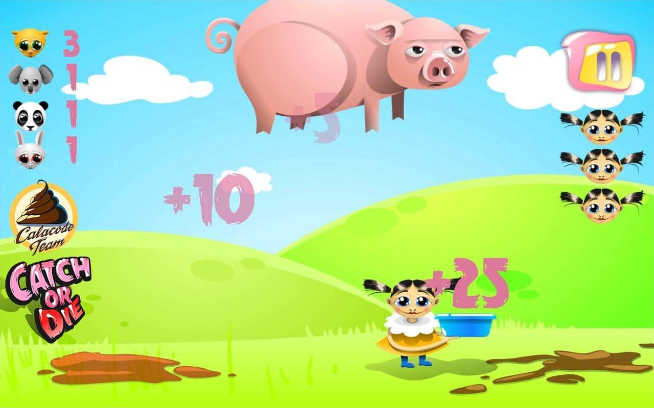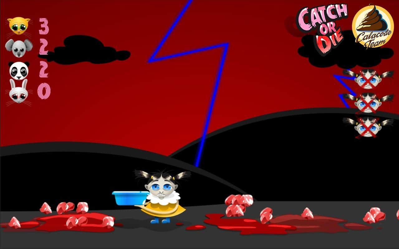 Catch or Die – если вы любите животных и хотите спасти их от неминуемой смерти то эта игра «Поймай или умри» для вас. В этой игре вы в качестве девочки будете ловить в корзинку падающих кошек, коал и панд, но будьте осторожны, с неба на нас могут падать большие свиньи и какашки вот их ловить ни в коем случае не надо. Помогите падающим животным и словите их в корзинку, иначе они разобьются. Вначале игры вам будут даваться три жизни, с каждым не пойманным животным жизни у вас будут уменьшаться, а если они совсем закончатся вас переедет грузовик. Вот такая вот веселая игра, так что ловите животных и помогайте им в их нелегкой ситуации.