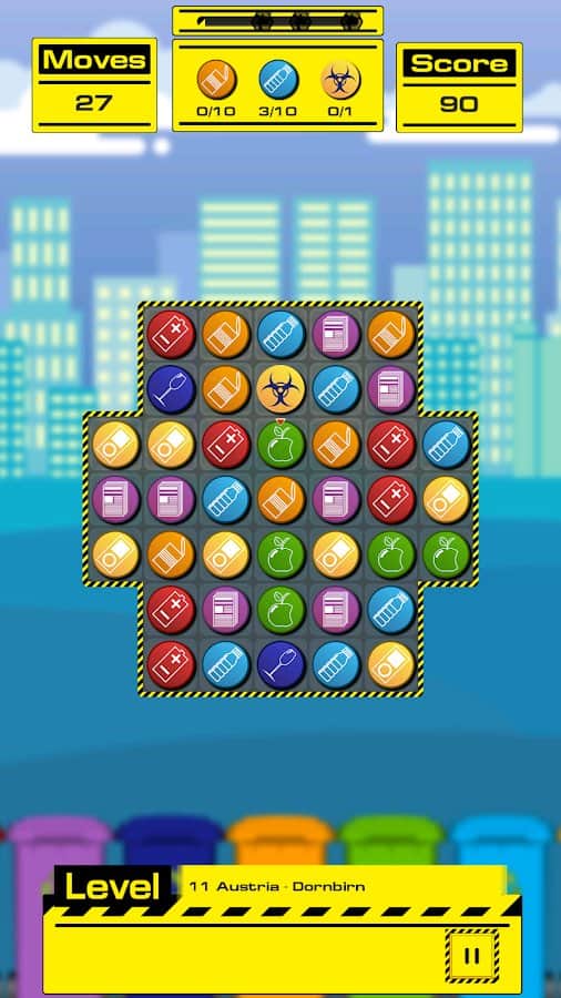 Clean Planet Match - Серьезно займитесь подготовкой планеты к безопасному и чистому проживанию, так как за столько лет существования человечества на Земле появилось огромное количество мусора. Сортируйте различные виды мусорных отходов, привлекайте к всемирной проблеме новые страны с городами, зарабатывайте специальные звезды для дальнейшего обмена ими на полезные инструменты, которые пригодятся на сложных уровнях. Покупайте определенные усилители для улучшения результатов переработки, но не забывайте утилизировать отходы радиоактивности.