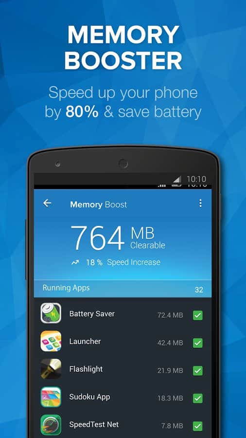 Cleaner Booster - Очистите и ускорьте работу своего устройства. Данное приложение подчистит те файлы, про которые вы давно забыли, или которые остались после удаление других приложений. Оно не будет бездумно удалять всё подряд, а спросит вас какие из перечисленных файлов не нужны. Так же, заменив стандартный очиститель этим, вы сможете более тщательно, очищать память смартфона от действующих приложений. А ещё здесь встроен режим для ускорения игр. И хоть и не много, но все же он оптимизирует память для запуска игры.