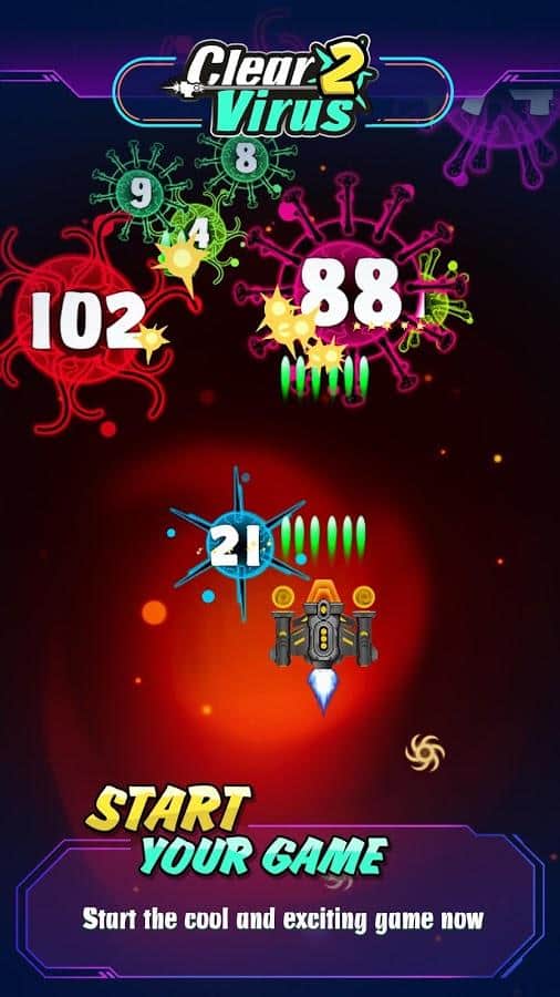 Clear Virus - Clash of Bio, 98K, Virus War – скролл-шутер на андроид, где вы будете уничтожать вирусы. В вашем доме развелось много вирусов так что приготовьтесь сражаться и стать самым лучшим стрелком. Возьмите под свой контроль корабль и ведите непрерывный огонь по вирусам, которые способны мутировать и размножаться. При каждом выстреле вирус будет распадаться что усложнит вам задачу. Прокачивайте и улучшайте свой самолет и готовьтесь к битве с сильными боссами. Игра порадует игроков отличной графикой, крутым звуком и вибрацией что позволит вам по-настоящему насладиться игрой.