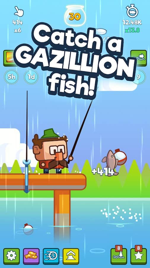 Clickbait: Tap to Fish – увлекательный кликер на андроид, где вы будете ловить рыбу на разных водоемах. Вашей главной задачей в этой игре будет нажимать как можно чаще на экран своего телефона и весело проводить свое свободное время. Вылавливайте как можно больше рыбы и получайте возможность улучшить свои рыболовные снасти. Чем больше вы поймаете рыбы, тем больше возможностей у вас будет вплоть до автоматизации процесса. Решайте различные логические задачки и открывайте доступ к новым водоемам, где сможете поймать больше рыбы. Получайте бонусы и призы и наслаждайтесь яркой графикой.