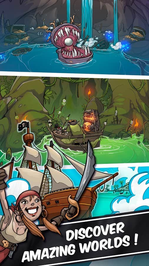Clicker Pirates - Все мы давно уже привыкли к такому жанру игры как кликер. Где не нужно особо напрягаться, а просто клацать по экрану как можно быстрее, пока на нем не останется вмятин. Но данная игра вносит определенное разнообразие в данный жанр. Теперь вы пират! Да именно пират, и ваша задача рубить все на своем пути, используя весь ваш арсенал. В игре очень любопытно сделаны текстуры персонажей, а так же весьма не плохая анимация. Вам нужно будет собирать золотые дублоны, что падают из монстров, и улучшать свои навыки, или же нанимать новую команду. Чем больше уровней вы пройдете тем сложнее будут монстры, но вы же отважный пират, так что вам все по плечу.