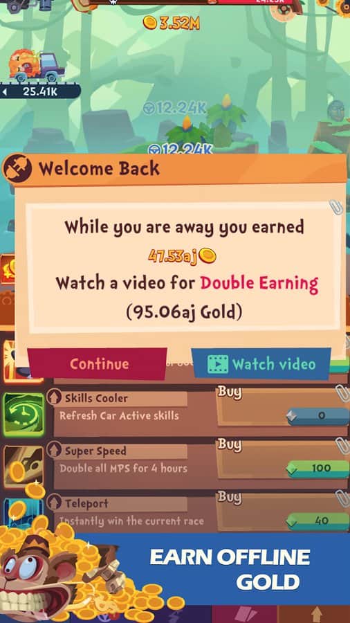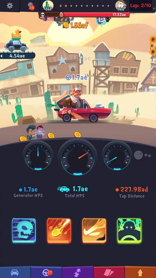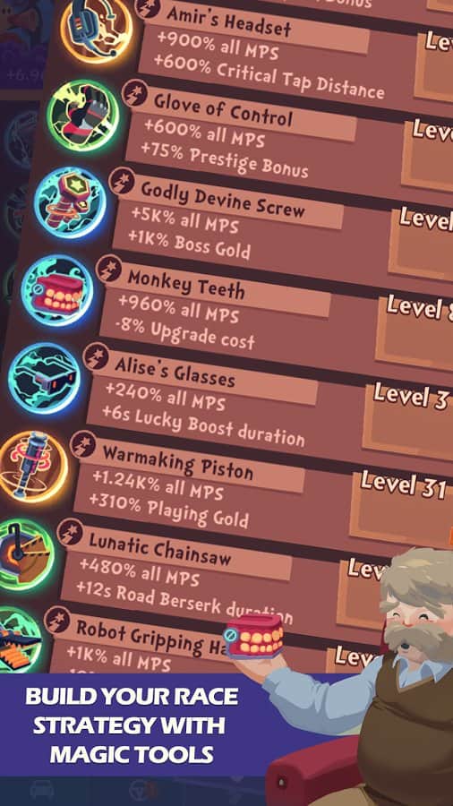 Clicker Racing – отличный гоночный кликер на андроид, где вы будете помогать Джиму осуществить свою заветную мечту, стать легендарным гонщиком. Путешествуйте по разнообразным сказочным странам и нажимайте как можно чаще на машину главного героя, тем самым ускоряя ее, побеждая соперников или получая возможность открыть новые машины. Соберите свою непобедимую команду, состоящую из 36 персонажей, которые откроют для вас новые технологии, и вы сможете проводить гонку в авто-режиме. Разблокируйте 6 неповторимых автомобилей, которые порадуют вас новыми преимуществами, и ездите по 8 странам нарисованным вручную. Заработайте все золото в этой игре и раскройте свой потенциал истинного гонщика.
