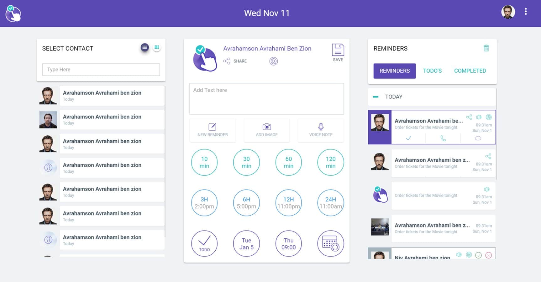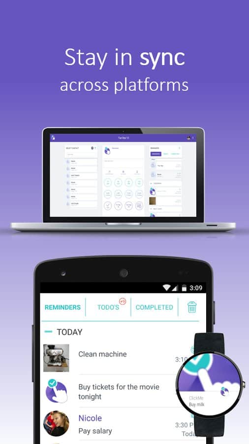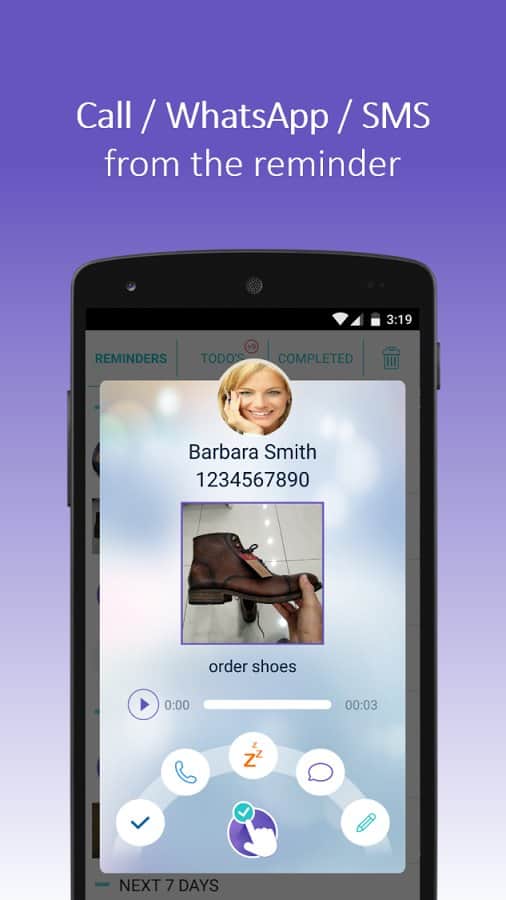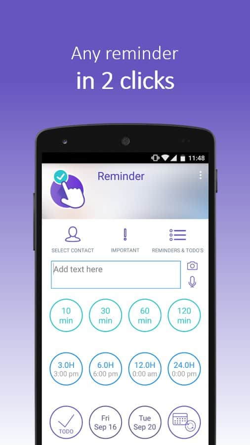 Особенно легко создавать напоминания, привязанные к вашим контактам: список последних, с кем вы связывались будет отображаться в приложении.