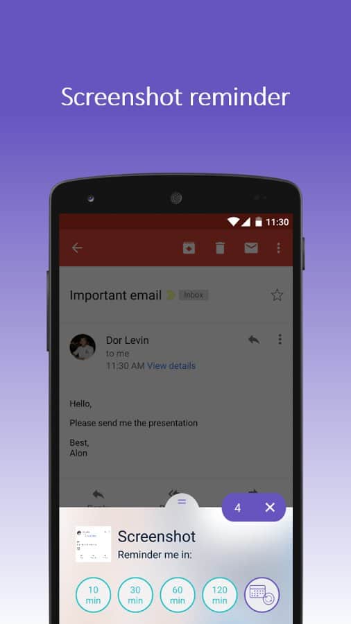 Суть его в том, чтобы создавать напоминания максимально быстро. Вы можете превратить в заметку фото из галереи или сделать новое, можете записать на диктофон или создать скриншот. К этим данным вы при необходимости добавляете текст и время, через которое вам нужно напомнить о событии, причем варианты уже будут вам предложены от 10 минут до недели — вам остается только выбрать подходящий вариант.