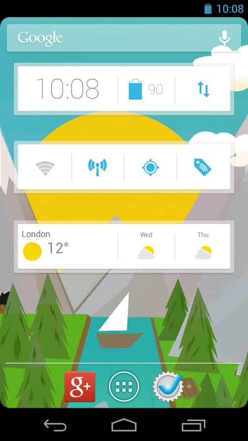Clock Now – классный интерфейс для андроид устройств от разработчика Pastry Lab, который выполнен в стиле обоев Google Now. В свою очередь Clock Now представляет собой набор виджетов таких как: заряд аккумулятора, виджет погоды и часов. Стоит отметить, что один из виджетов служит включателем для различных функций (wi-fi, gps и т.д). Солнечной погоды, отличного время провождения и неиссякаемой жизненной энергии вам!