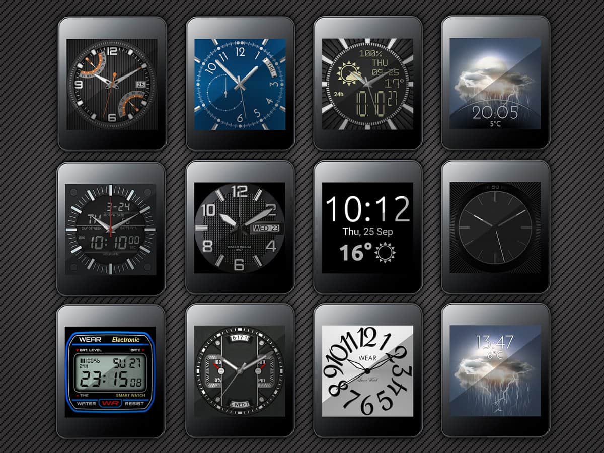 Любой представленный циферблат подойдет и для круглых, и для квадратных дисплеев.