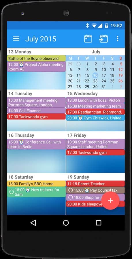 CloudCal - многофункциональный бесплатный календарь, который позволит вам не только планировать своё время и предстоящие дела, но и просматривать важные события, синхронизировать данные с Google и Outlook. Одним нажатием можно преобразовать интерфейс таблицы текущего месяца на циферблат, тем самым спланировать свою занятость. Приложение легко работает и на других устройствах при заданных пользователем настройках. Уведомления с возможностью повтора своевременно напомнят вам о грядущем мероприятии. Одним движением можно пригласить партнёра или друга на встречу, отправив ему оповещение на электронную почту, прикрепив нужный файл: документ, картинку, фото, аудио и т.д. Меняйте тему и фон календаря, как угодно, отмечайте цветом любое событие. Создавайте списки задач и управляйте ими по вашему усмотрению, настраивая сроки выполнения, напоминания, отправку друзьям и коллегам.