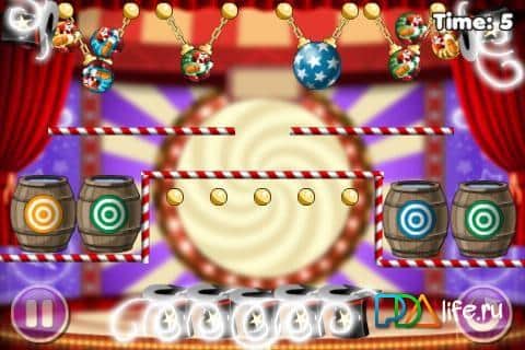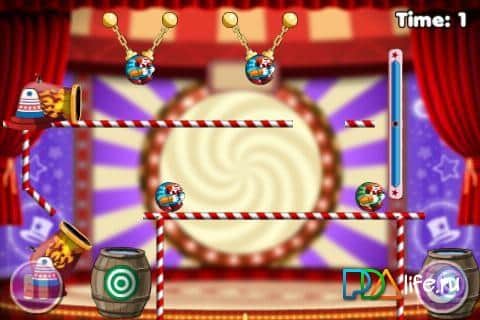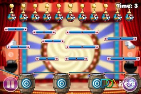 Clowning Around - веселая цирковая аркада-головоломка для андроид. Вас ждет цирк и клоуны прямо в вашем устройстве. Ваша задача на протяжении всех 75 уровней - помочь клоуну попасть в бочку с водой. А это не просто! В этом вам помогут мячи, помогающие прыгать и отталкиваться, волшебные шляпы мага, перемещающие в пространстве, а также кнопки, пушки, перерезание каната и пр. Кроме того, клоуны разных цветов и попасть они должны в бочку соответствующего цвета. Задач много, а вот удастся ли вам использовать все подручные средства с головой и достичь результата - известно только вам!