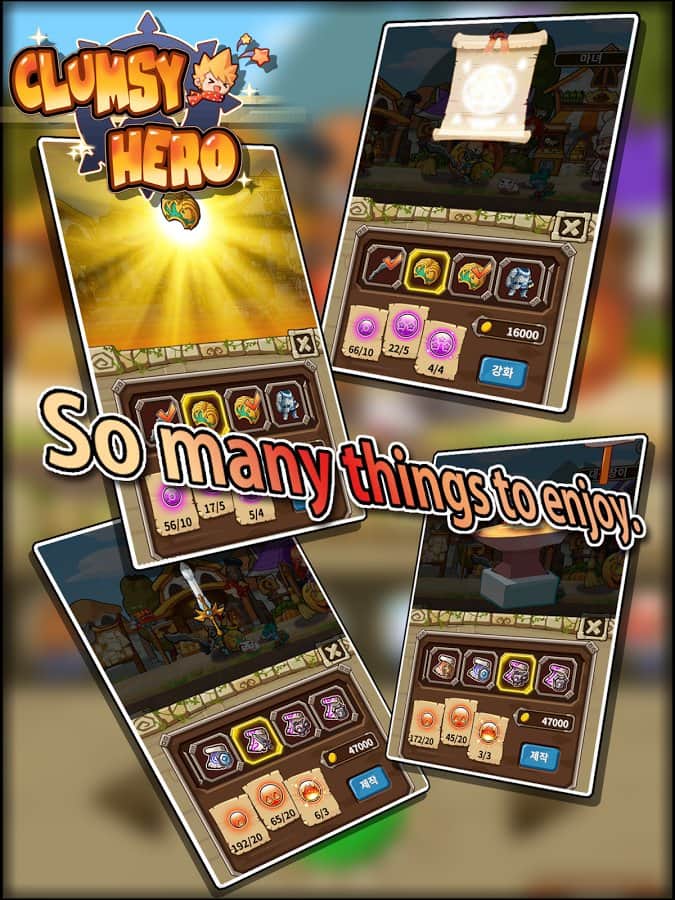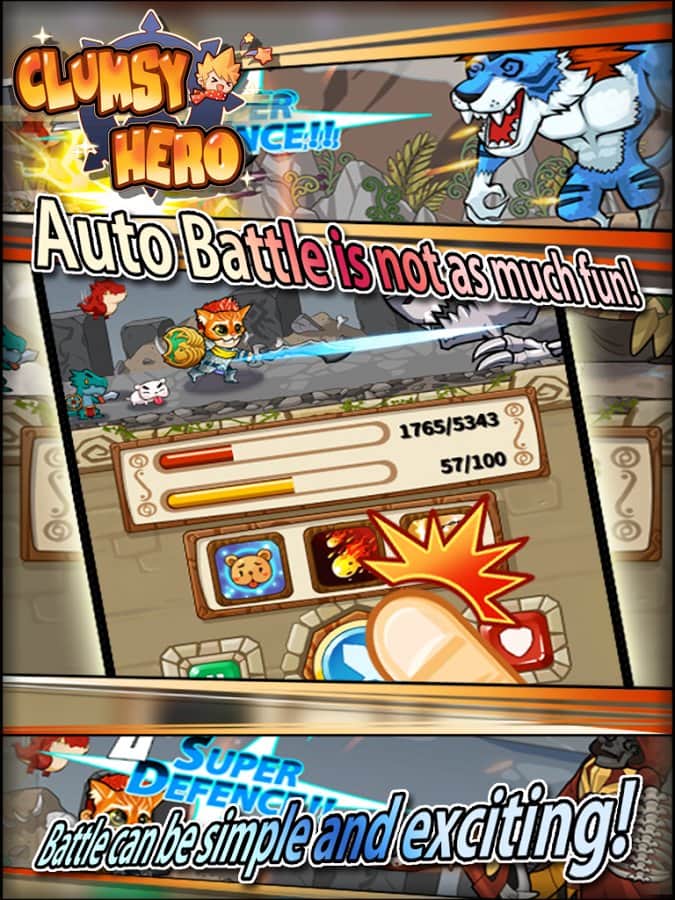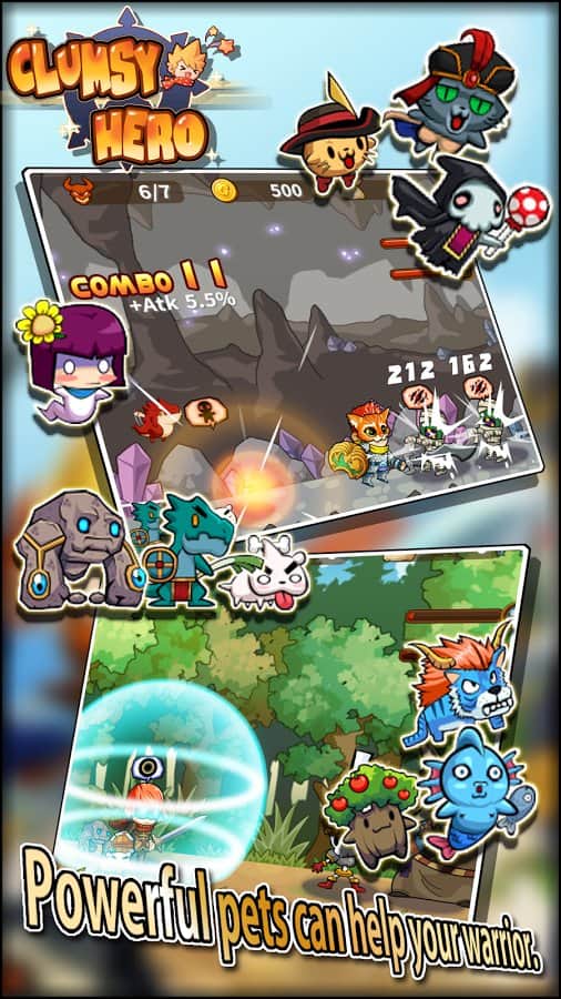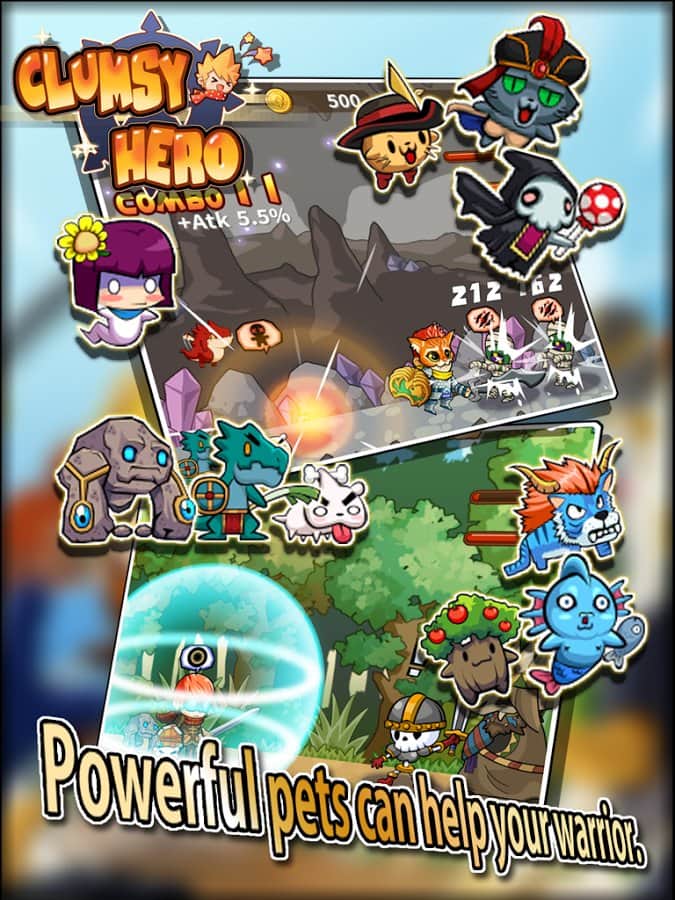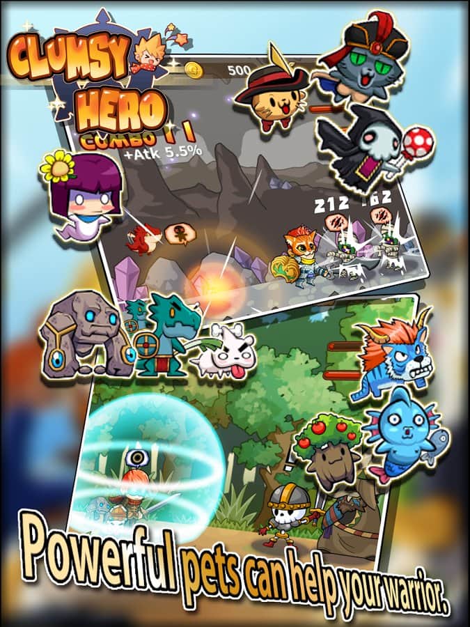 Clumsy Hero - RPG на андроид, с увлекательными путешествиями отважного героя. В этой игре вашему герою выпала опасная миссия по спасению королевства от зла. Путешествуйте по различным мирам и сражайтесь с могущественными врагами при этом, пытаясь улучшить характеристики своего героя добавив ему более мощное оружие. Встречайте на своем пути различных домашних животных и берите их в свою команду, они помогут вам расправляться с врагами с помощью магии. Зарабатывайте себе отличную репутацию, спасая от беды жителей королевства при этом делая все вовремя. Создавайте непобедимые гильдии с другими героями, что сделает игру более легкой и веселой.