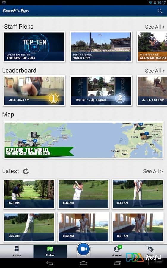 Coach's Eye - интересное предложение для спортсменов от разработчиков TechSmith Corporation для вашего андроид устройства. Снимайте видео со своими тренировками и подвергайте его подробному анализу, для понимания совершенных ошибок и работы над ними. Для этого в приложении есть функции просмотра видео с необходимой скоростью, паузой и возможностью создания пометки прямо в картинке и отправлением ее куда вам необходимо. Удобно, просто и, главное, очень полезно для начинающих чемпионов!