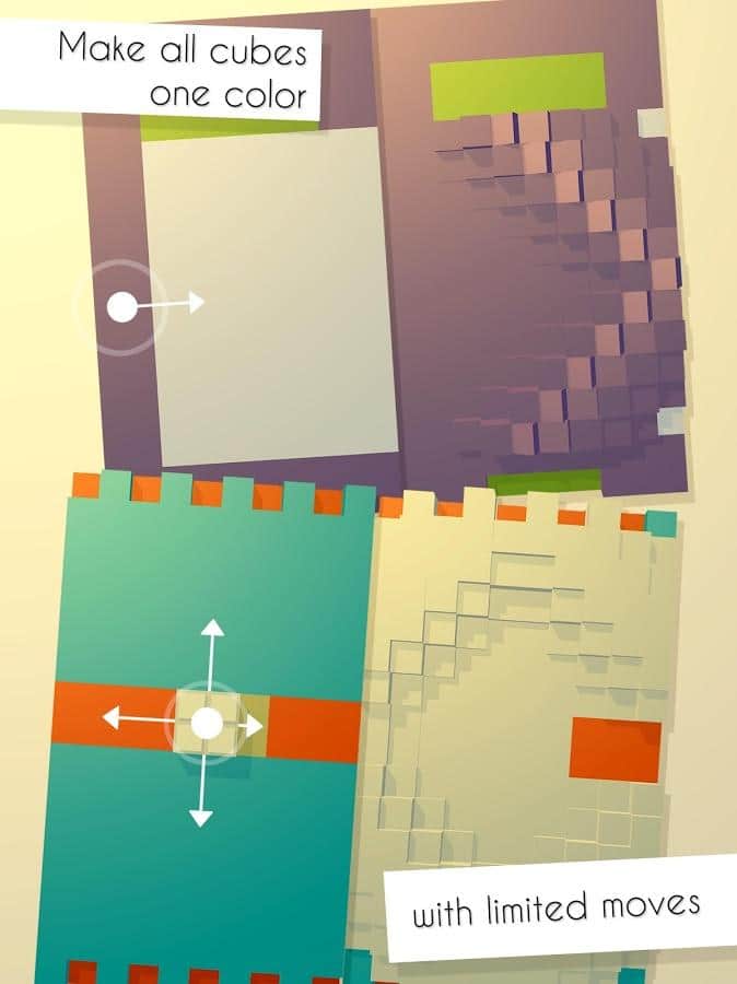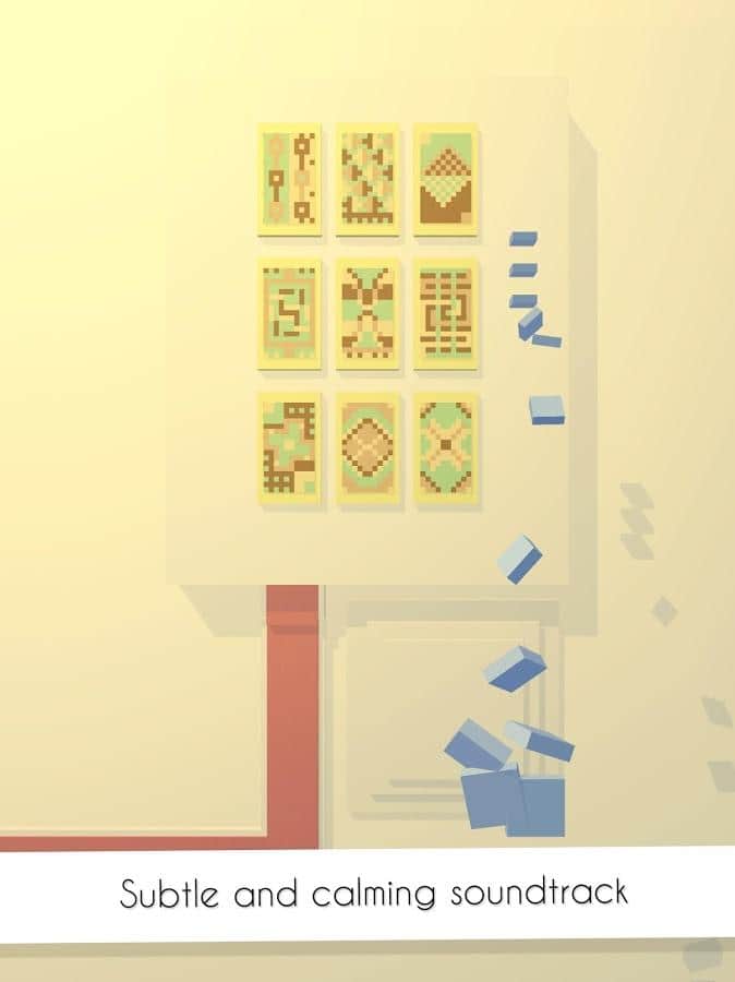 Cobe The Gallery - По словам разработчика эта игра создана для того что бы размышлять и успокаивать нервы, однако далеко не у всех будет порядок с нервами когда он дойдет до самых сложных уровней. Задумка в игре очень простая, вам нужно окрасить всё поле в один цвет, за определенное количество ходов. Однако есть некоторые правила, и в обучении вам подробнее о них расскажут. К тому же в игре очень спокойная и приятная музыка, что действительно делает прохождение игры немного легче.
