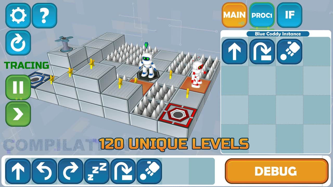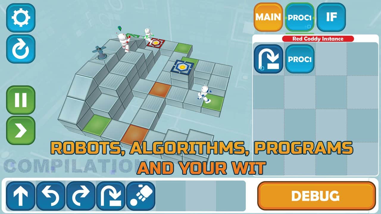 Coddy: World on Algorithm - В этой игре вы будете управлять небольшим роботом, какой попал в лабиринты. Чтобы помочь роботу вы должны будете управлять им, вписывать самые простейшие алгоритмы для его управления.
