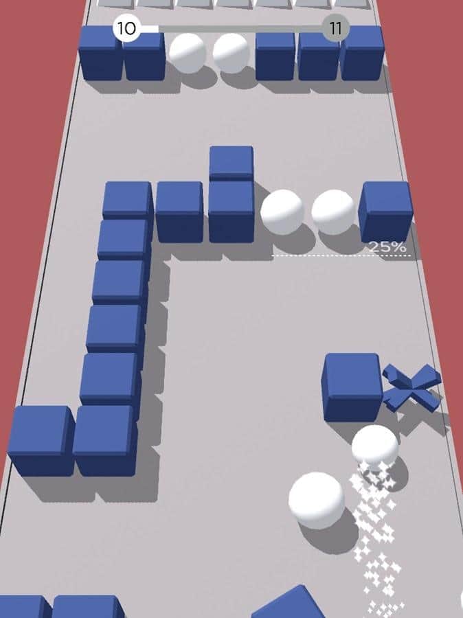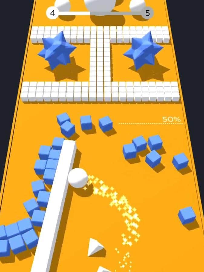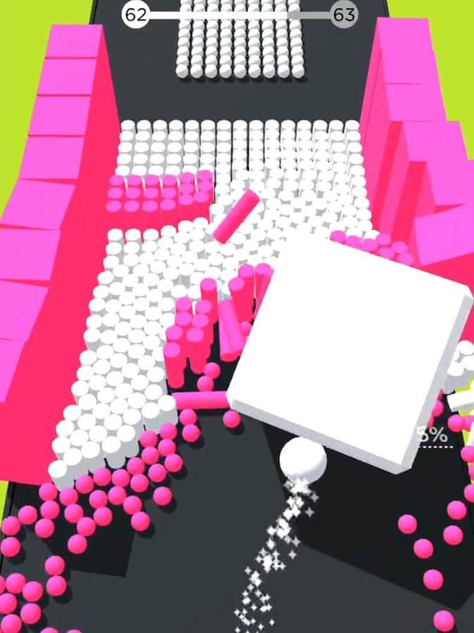 Color Bump 3D – занимательная игра на андроид, где вы будете управлять шариком и разрушать все на своем пути. В этой игре вашей главной задачей будет управлять белым шариком и разрушать разнообразные фигуры, состоящие их шаров, треугольников и квадратов. Разрушайте и разбивайте фигуры на вашем пути и старайтесь при этом не сталкиваться с фигурами другого цвета. Пройдите более 100 уровней игры и наслаждайтесь безграничным весельем. Устанавливайте свои рекорды в игре и займите лидирующие позиции в таблице.