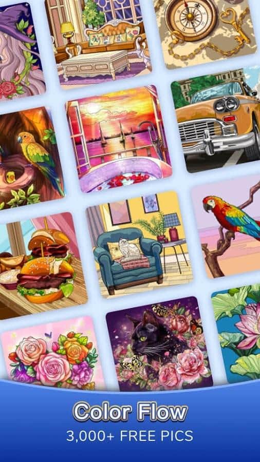 Color Flow - больше 3000 изображений доступны для раскраски! Ощутите себя начинающим художником с большим потенциалом и начните развивать собственные навыки раскрашивания картины по номерам. Эта игра в особенности расслабляет, а не только развивает творчество внутри. По окончанию покажите замечательные шедевры друзьям в социальных сетях! Вы можете использовать игру даже перед сном, в ней встроены цвета с защитой для глаз от раздражения и переутомления. Рисуйте кого угодно, когда удобно и где комфортно, откройте новую частичку себя.