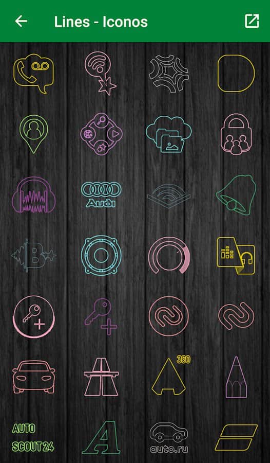Забудьте про стандартное оформление рабочего стола устройства. Скачайте новый пакет иконок Color Lines и насладитесь его функциональностью и стильным дизайном. Иконки из этой коллекции имеют высокое разрешение и HD качество. Они идеально подходят для темной темы, гармонируя на контрастном фоне во всей красе. Установка пакета значков не займет много времени и является простой и быстрой. Вы можете отправить запрос иконок по электронной почте, использовать доску CandyBar, насладиться приятным графическим интерфейсом, поддерживающим несколько различных языков. Оцените оригинальный стиль значков и яркие насыщенные цвета.