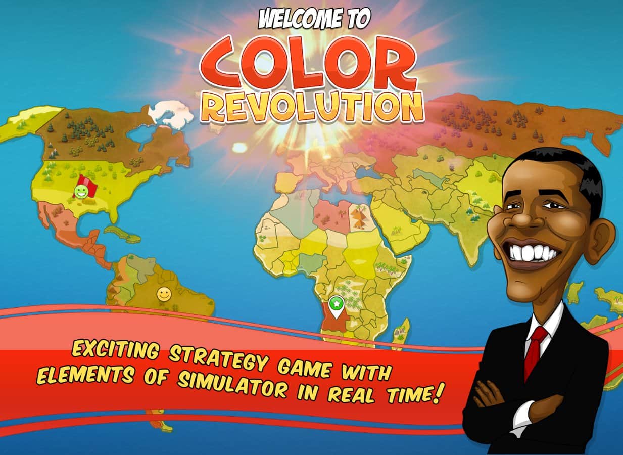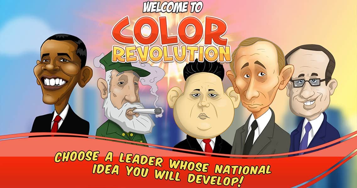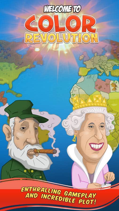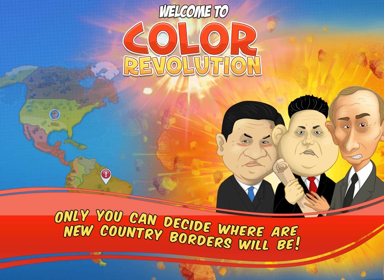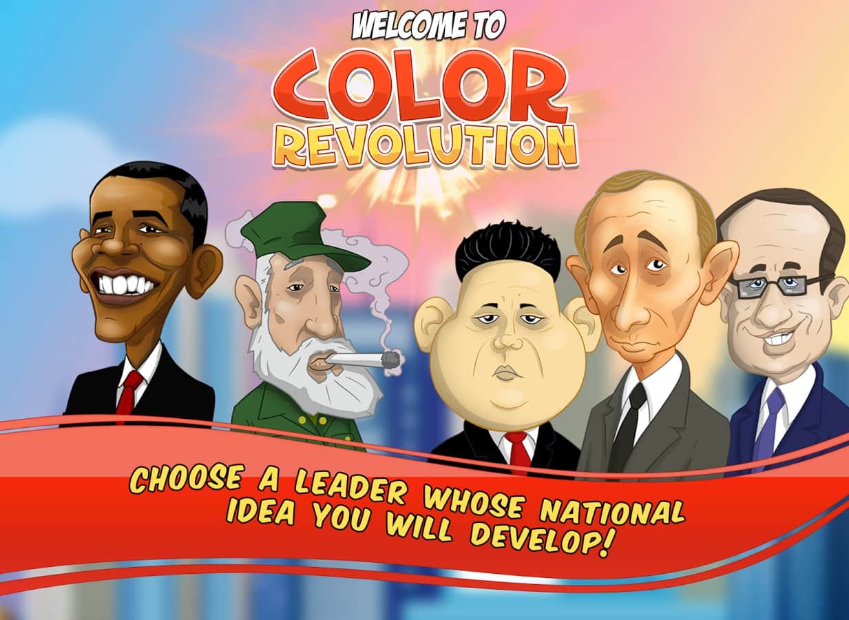 Color Revolution – стратегия на андроид, в которой вы будете продвигать свою национальную идею в качестве лидера мировой державы. Выбирайте себе героя из 10 узнаваемых представителей, каждый из которых имеет свои взгляды на политику и власть во всем мире. Продвигайте свою идею, манипулируйте чужими мнениями и привлекайте на свою сторону как можно больше сторонников, которые будут поддерживать вас в любой ситуации. Возьмите власть в свои руки и достигните мирового господства, придвигая свои идеи в массы. Станьте успешным политиком, дипломатом и лидером во всем мире. Изучайте различные приемы и умения и применяйте их в дебатах с другими политиками. Играйте с другими игроками не оставляя им не единого шанса на победу.