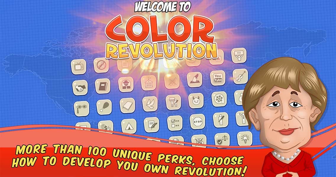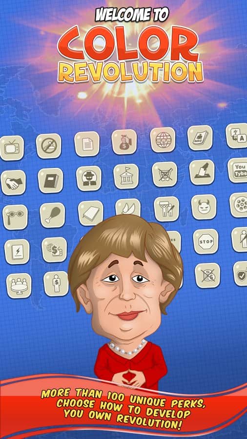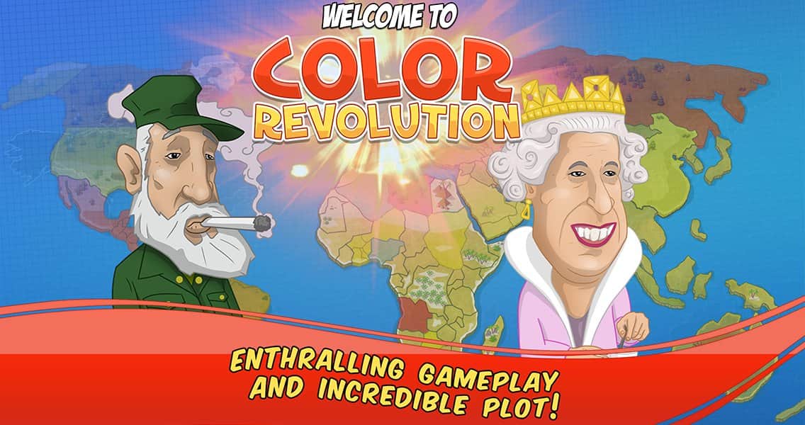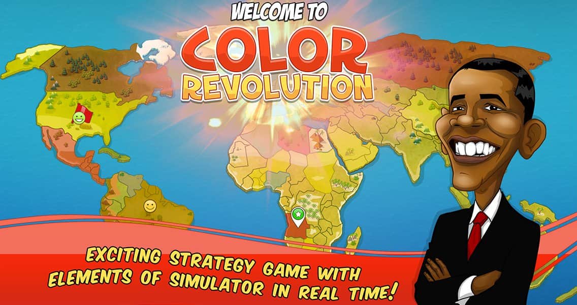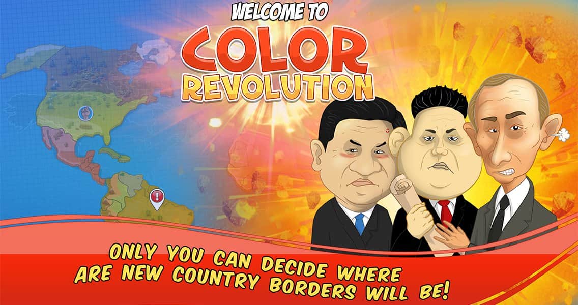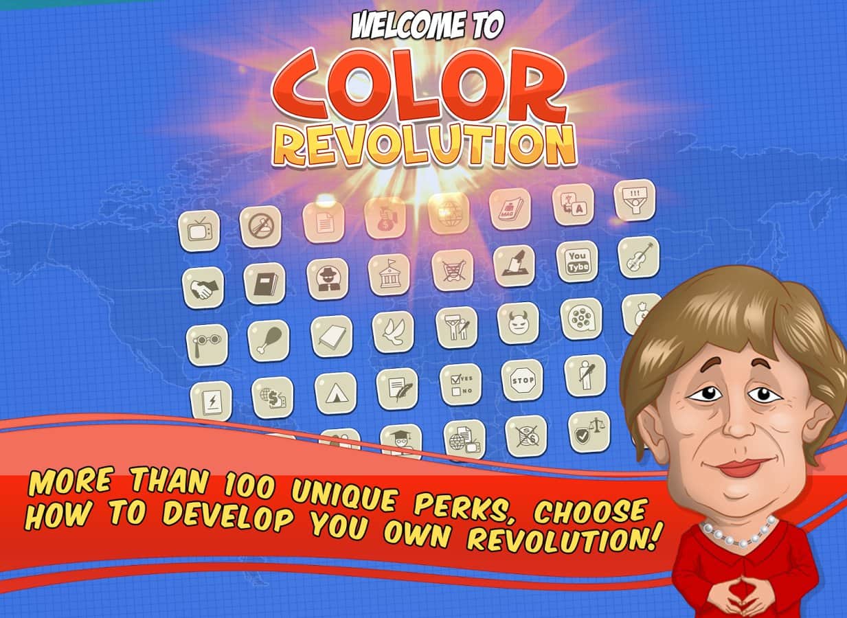 Color Revolution – стратегия на андроид, в которой вы будете продвигать свою национальную идею в качестве лидера мировой державы. Выбирайте себе героя из 10 узнаваемых представителей, каждый из которых имеет свои взгляды на политику и власть во всем мире. Продвигайте свою идею, манипулируйте чужими мнениями и привлекайте на свою сторону как можно больше сторонников, которые будут поддерживать вас в любой ситуации. Возьмите власть в свои руки и достигните мирового господства, придвигая свои идеи в массы. Станьте успешным политиком, дипломатом и лидером во всем мире. Изучайте различные приемы и умения и применяйте их в дебатах с другими политиками. Играйте с другими игроками не оставляя им не единого шанса на победу.