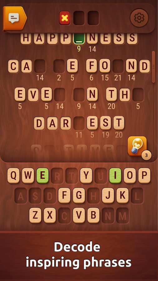 Colorwood Words - Cryptogram - это увлекательная игра для всех любителей разгадывать слова и тренировать ум. Погружайтесь в атмосферу спокойствия и логических задач, где каждое новое слово расширяет словарный запас и пробуждает интерес к поиску решений.