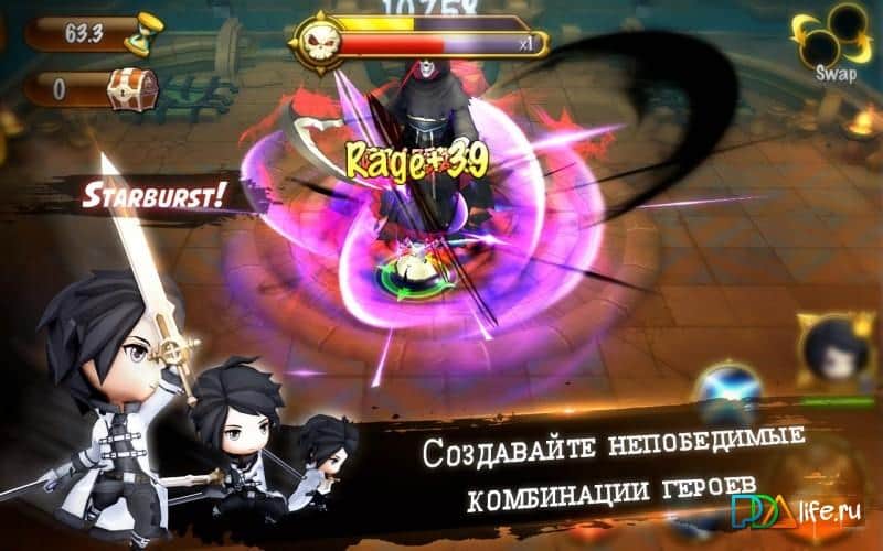Combo Clash - окунитесь в фантастический мир Combo Clash. Динамичная action-RPG с хорошей графикой, отличным сюжетом, различными героями и массой интересных квестов. Как и во всех играх этого жанра вам можно прокачивать своего персонажа по мере прохождения игры. Повышая его уровень можно увеличить характеристики той или иной способности, а получение новое оружие или доспехи, делает игру ещё более увлекательной. Комбо атаки стремительно наносятся противнику, и тот может быть просто ошеломлён таким напором. Каждый из ваших героев обладает своими уникальными способности и имеет как сильные так и слабые стороны.