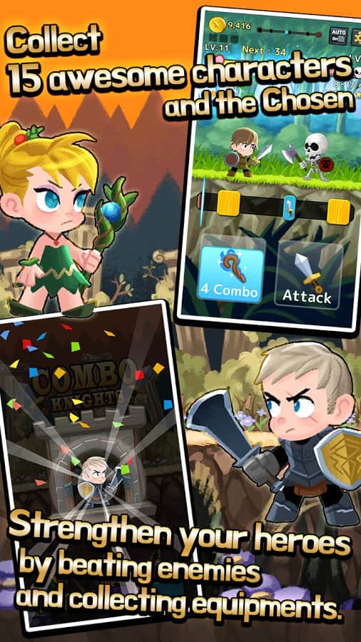 Combo Heroes: Blade Master Age – RPG на андроид, где вы возьмете под свой контроль отважного героя и проведете его по многочисленным уровням игры. В этой игре ваш воин вступит в многочисленные битвы с ужасными монстрами и сильными боссами. Исход всех боев будет зависеть от скорости вашей реакции и пальцев, которые будут в нужный момент касаться экрана и заставлять персонажа наносить удары или защищаться. Применяйте в битве разнообразные способности и разрушительные удары, которыми обладает герой. Побеждайте в нелегкой схватке своих врагов и получайте ценные трофеи и вознаграждения. Соберите все пять старинных артефактов, которые помогут вам сразиться с боссами в финальной битве. Открывайте для себя новых героев.