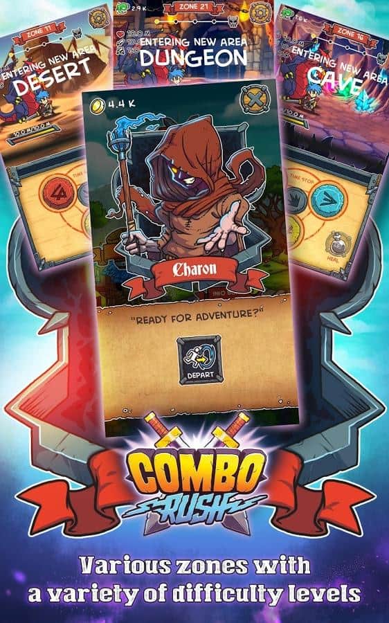 Combo Rush - Keep Your Combo – игра–головоломка на андроид, с элементами RPG. В этой игре вашей главной задачей будет выполнять мощные комбо атаки и побеждать сильных монстров. Отправляйтесь в увлекательное путешествие в компании многочисленных монстров и побеждайте в стремительных боях своих врагов, применяя на деле уникальные способности монстров. Обновляйте навыки героя и проделывайте комбо удары, а также пополняйте свою команду монстров и питомцев новыми. Зарабатывайте баллы и ступайте в бой с другими игроками со всего мира.