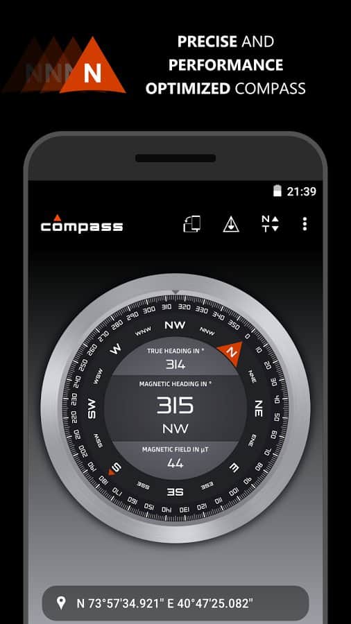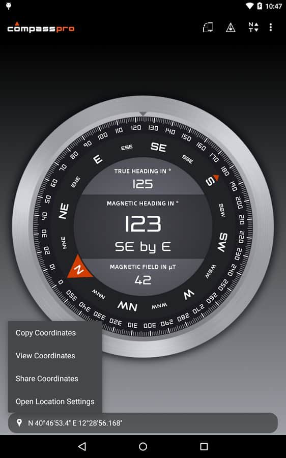 Compass – замечательное приложение для андроид от разработчика gabenative, с помощью которого вы всегда найдете верное направление сторон света.