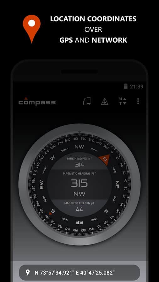 Compass – замечательное приложение для андроид от разработчика gabenative, с помощью которого вы всегда найдете верное направление сторон света. Русский язык: неизвестно