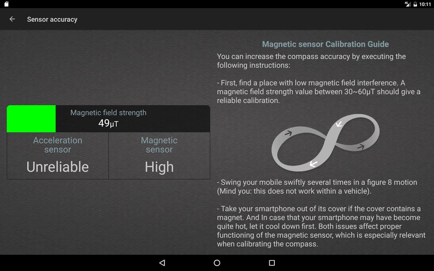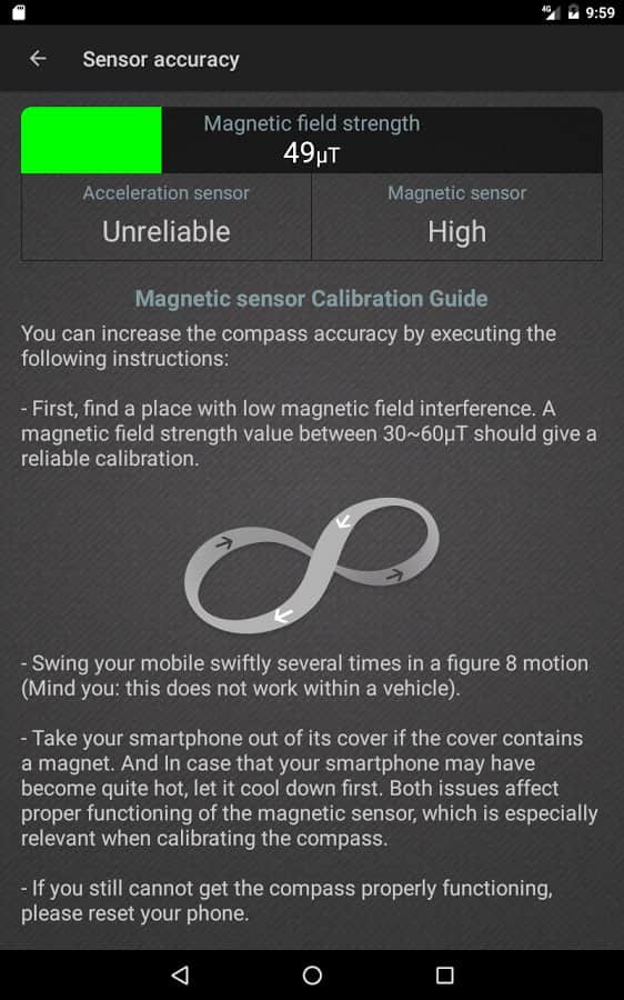 Compass Level - приложение совмещающее в себе точный компас, уровень и GPS координатор. Отличное приложение, тем кто занимается спортивным ориентированием. Туристам, охотникам, грибникам оно так-же пригодится. Для того чтобы приложение работало как часы, перед первым использованием необходимо его откалибровать и после этого оно готово к работе. Стоит обратить внимание, что точность данных может немного различаться в зависимости от модели вашего телефона. Так-же на точность влияет расстояние телефона до различных электронных приборов и расстояние до магнитного поля. Держите телефон подальше и вы всегда узнаете точное данные.