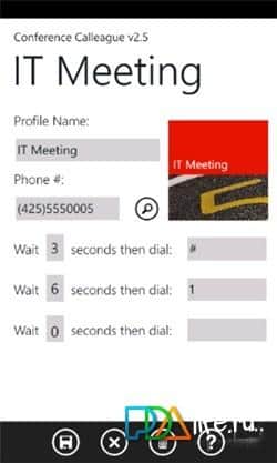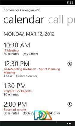 Conference Calleague - приложение для windows phone, с помощью которого вы сможете, сможете создавать телефонные конференции, записывать напоминания, сканировать календарь на писк следующих телефонных конференций. Отличная программа для делового человека и не только.
