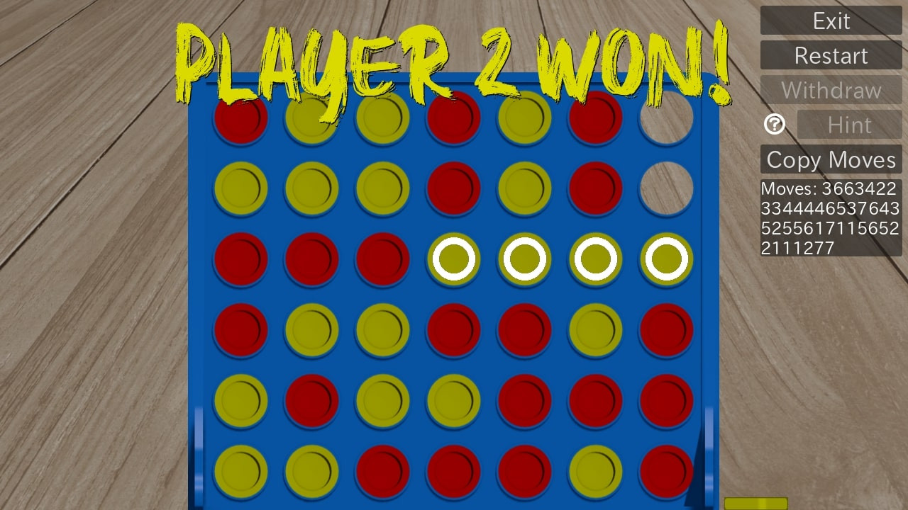 Connect Four превращается в стратегическую дуэль, где каждое решение влияет на исход партии. Играйте с друзьями, с умным ИИ или наблюдайте за поединками компьютеров. Регулируйте сложность, экспериментируйте с тактиками, отменяйте ходы и используйте подсказки, чтобы оценить позицию. В режиме «невозможно» вас ждёт профессиональный алгоритм, способный просчитать идеальную стратегию. Отточите логику, побеждайте и докажите своё мастерство.