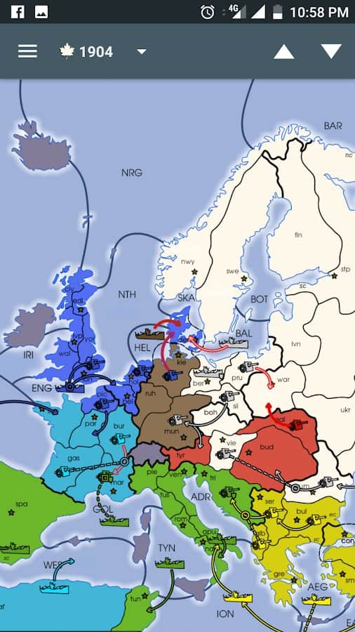 нубам или таким как ты (вот это на самом деле удобно, если ты впервые в игре у тебя будет 0 очков, а значит будешь играть тоже с нубами), графика простая. Коротко про геймплей: есть такие себе точки, чтобы выиграть тебе нужно или захватить все точки, или продержатся какое-то время. От этих точек влияет сколько юнитов у тебя будет. Всё юниты равны по силе, поэтому если ты кого-то атакуешь, нужно другим юнитом поддержать. Есть артиллерия и корабли. Артиллерия может захватывать территории на земле а корабль может воевать на воде и захватывать набережные территории. Также корабль тоже может поддержать артиллерию. Есть пять фаз игры. Весна и осень мы захватываем и удерживаем свои территории. Лето и зима проигравшие юниты выбирают в каком направлении отступать. Регулировка — если завоевали новые точки и у вас их больше чем юнитов то можно сделать новые подразделения, если меньше то некоторые пропадут. В целом игра не плохая, но онлайн не очень активный. Та й сама игра немного скучная, поэтому только 7.5 балов.