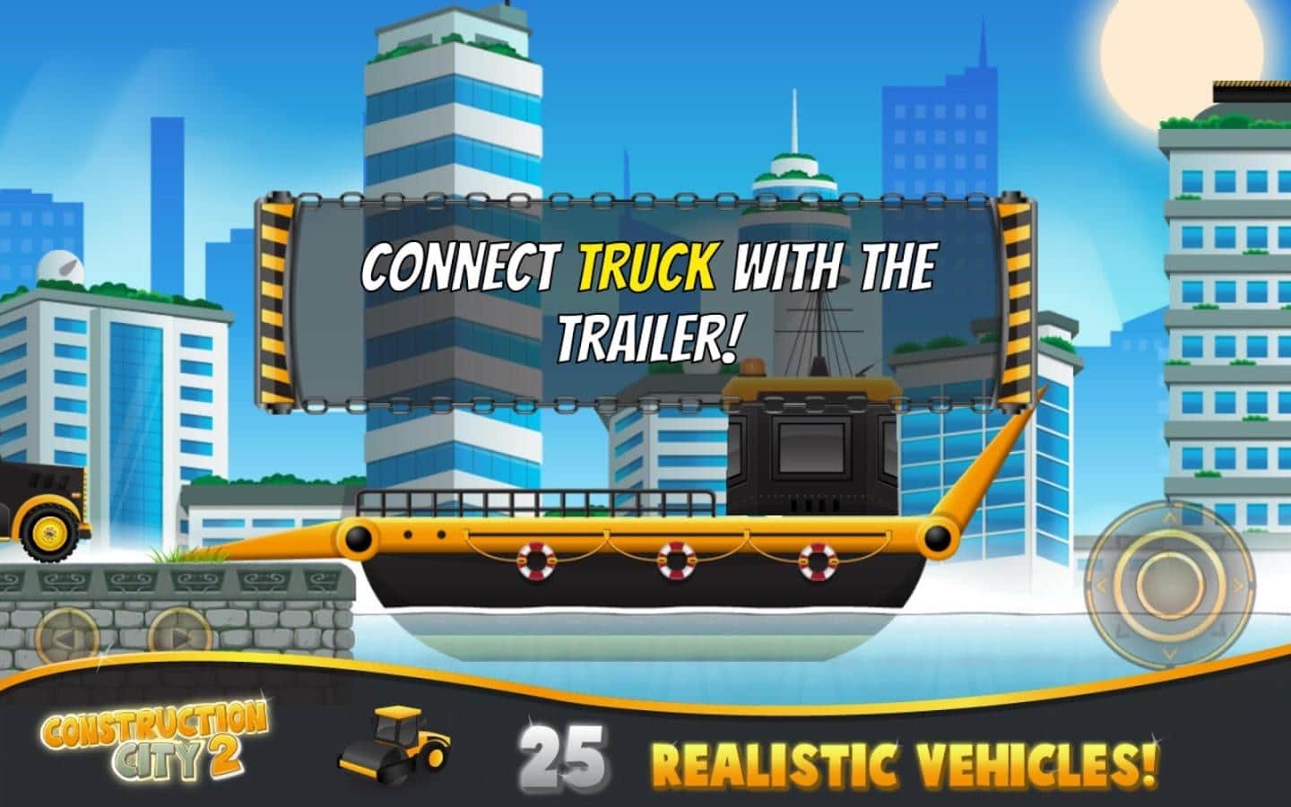 Construction City 2 – возьмите под свой контроль различную строительную технику этой игры на андроид, и выполняйте разнообразные миссии. В этой игре вашей задачей будет строить различные здания, приходить на помощь при различных авариях, помогать тушить пожары, подготавливать участки под строительство зданий и непосредственно строить их. Станьте самым лучшим и опытным строителем в этой игре и покажите все, на что вы способны. Перевозите различные грузы на кораблях и вертолетах необходимые вам для строительства домов и зданий. Стройте огромные мосты и другие необходимые конструкции и путешествуйте по пяти различным мирам. В игре представлено 120 уровней, 25 видов техники и отличная физика.