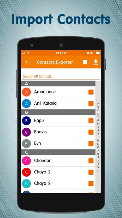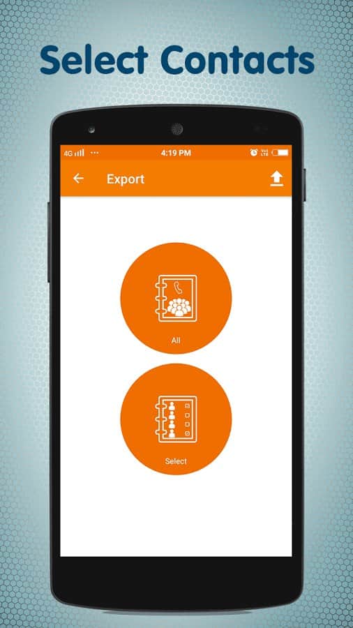 Возможность экспортировать все контакты или выбранные контакты, а затем поделиться контактами или сохранить свою учетную запись почты.