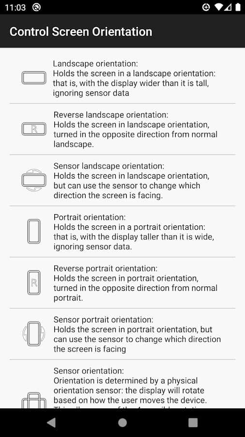 Комментарии к control screen rotation на Android