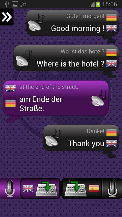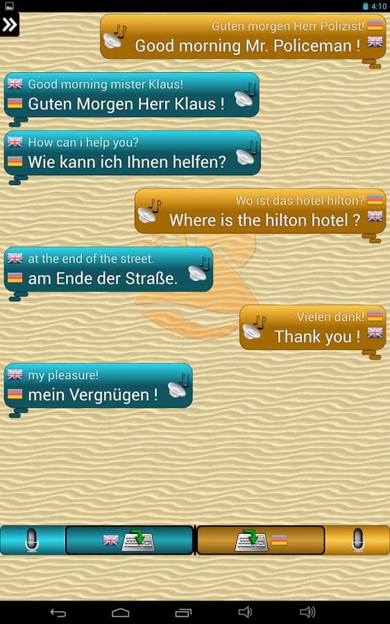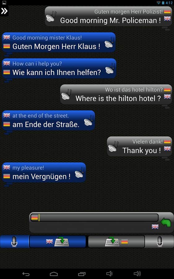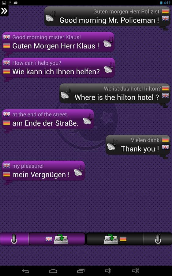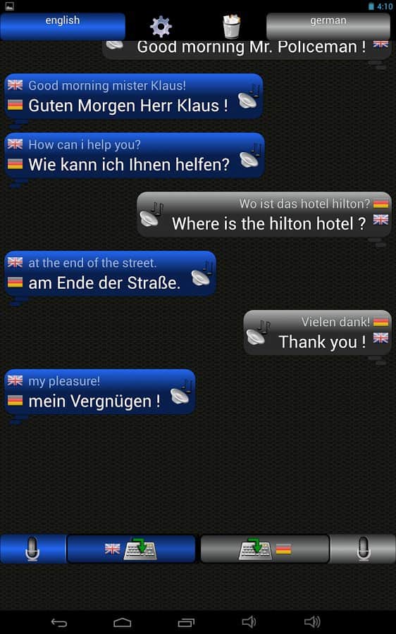 Conversation Translator - Простое и очень любопытное приложение которое будет переводить вам огромное количество языков со всего мира. Если вы любите путешествовать и постоянно ездите по различным местам, то оно станет незаменимым помощником в дороге. Настроив его на нужный язык, вы сможете в реальном времени переводить разговор человека на любой другой понятный вам язык. Работает приложение очень быстро и текст будет переводиться и озвучиваться.
