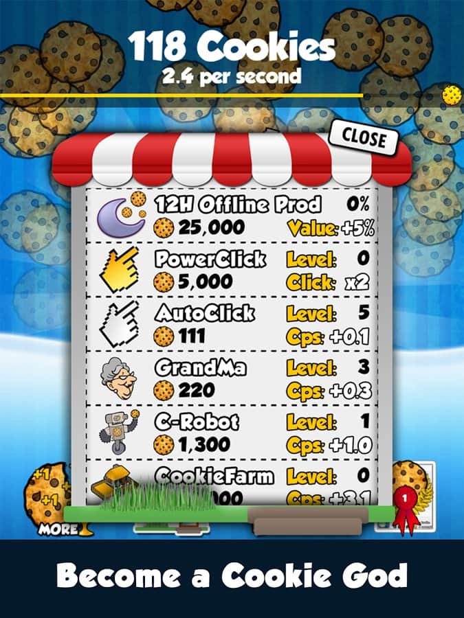 Cookie Clickers - игра на аndroid, в которой вам предстоит выпекать печенье. Выпекайте печенье так быстро как сможет и столько много, сколько позволит вам время. Как только вы выпеките достаточное количество вы сможете отправиться в магазин и использовать куки чтобы приобрести обновления чтобы выпекать печенье еще быстрее. Попробуйте свои силы в этой игре и посмотрите, сможете ли вы испечь свой первый миллион печенья.