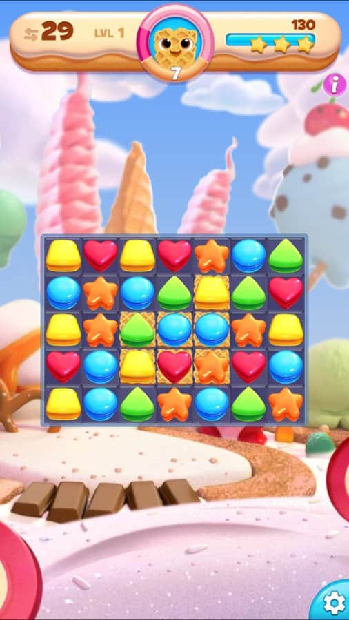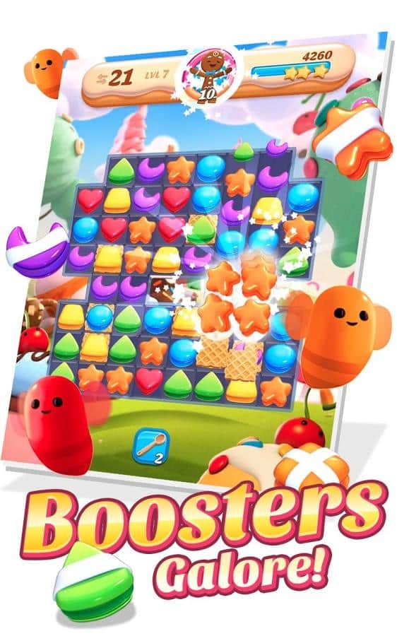 Cookie Jam Blast – захватывающая игра на андроид, из жанра три в ряд где вы будете путешествовать по сладкому миру. Садитесь в воздушный шар и отправляйтесь в фантастическое путешествие на остров десертов и необычных рецептов. В этой игре вашей задачей будет создавать необычные рецепты, зарабатывать награды и воздушные шары. Играйте в эту игру и наслаждайтесь отличной графикой, новыми режимами игры и необычными головоломками. Собирайте четыре элемента и получите в награду железную пчелку, которая встряхнет поле. Используйте в игре бонусы и меняйте объекты местами для того чтобы получить дополнительные лакомства. Ловите топинги которые так и хотят от вас улизнуть, подставляя рядом многочисленные сладости. Играйте с друзьями и добивайтесь отличных результатов.