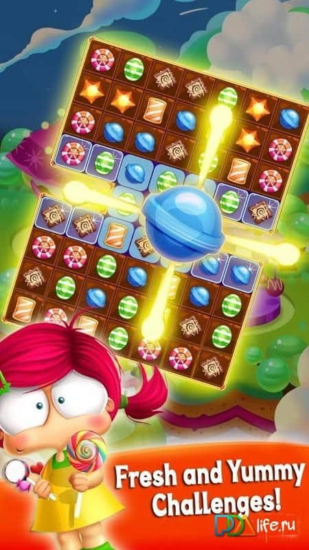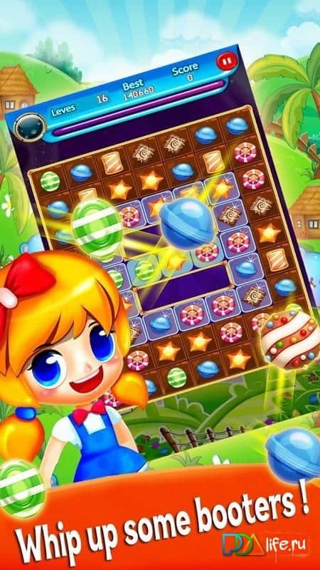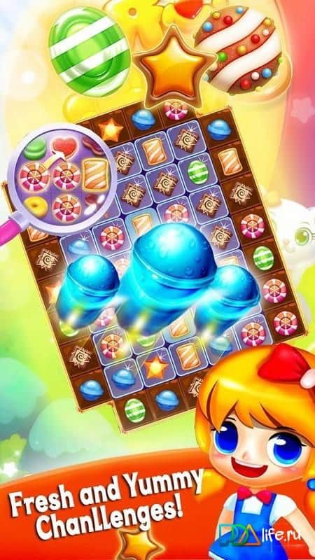 Cookie Star 2 – посетите мир сладостей вместе с этой игрой, где вам предстоит складывать их в ряды. Составляйте по три и более одинаковых конфет, печенья и других сладостей в ряд и взрывайте их, получая за это очки и освобождая место для других сладостей. Путешествуйте по сказочной стране и собирайте максимально возможные по длине ряды из сладостей, чтобы проделать комбо удар и получить ценные бонусы и усиления, которые помогут вам быстрее пойти уровень. Попробуйте разморозить все ячейки со сладостями и с легкостью преодолевайте все трудности вставшие у вас на пути. В игре более 259 уровней, множество разнообразных бонусов и яркие спецэффекты взрывов.
