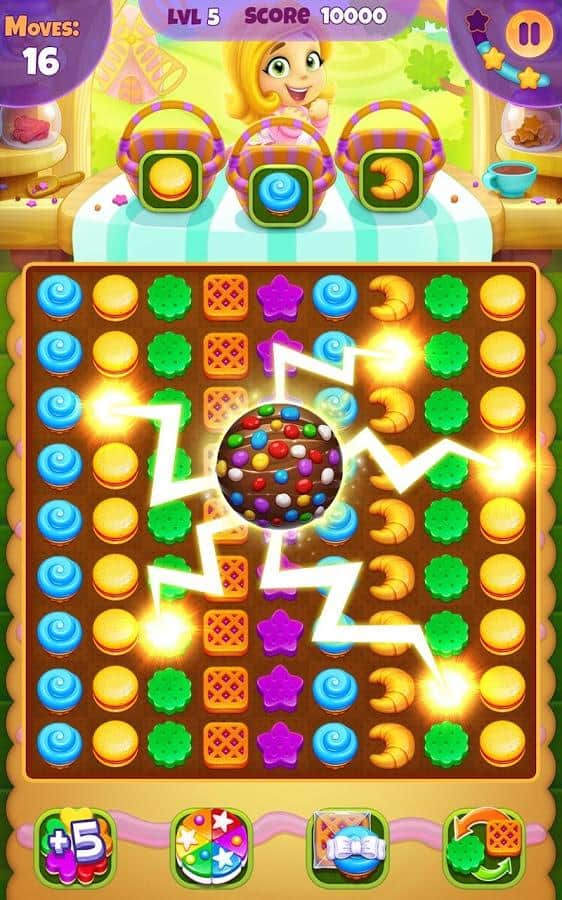 Cookie Yummy – веселая игра на андроид, где вы окунетесь в мир сладостей. В этой игре перед вами будет стоять задача по составлению рядов из вкусного печенья, и необходимость взрывать их. Составляйте по три и более одинакового печень я в ряд и старайтесь заполучить как можно больше очков. Путешествуйте по королевству сладостей и помогите милой героине готовить различные кондитерские шедевры. Выполняйте все миссии и проходите уровни игры, стараясь потратить на них как можно меньше ходов. Составляйте из печенья максимально длинные ряды и получайте бонусы и усиления. Установите свой рекорд в этой игре и соревнуйтесь с друзьями за лучшие результаты.