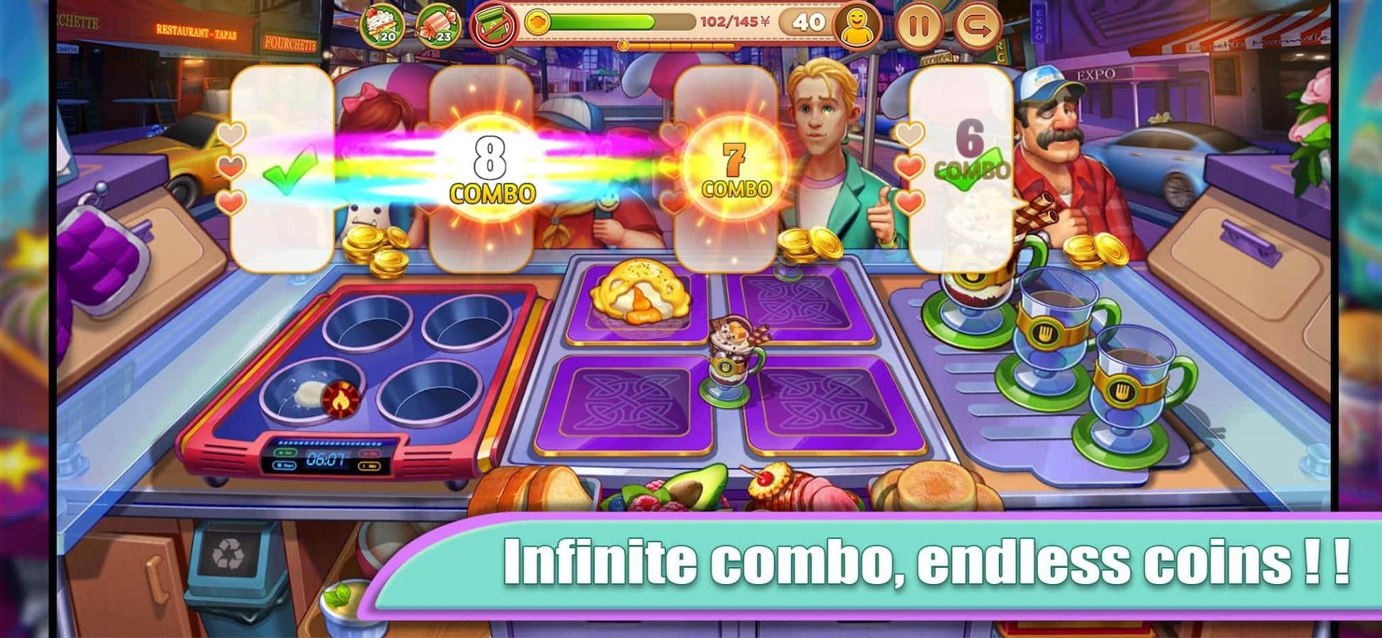 Cooking Restaurant - Fast Kitchen Game – веселая игра, в которой вам предстоит открыть собственный ресторанчик и управлять всеми его процессами. Готовьте разные блюда на заказ, находите новые рецепты и зарабатывайте положительные отзывы от других игроков и ваших клиентов. Учитесь делать вкуснейшие десерты или жаркое быстро и качественно и не заставляйте посетителей ждать слишком долго. Получайте награды и зарабатывайте деньги, делайте ремонт и улучшайте своё заведение. Приходите в гости к другим пользователям и принимайте их помощь.
