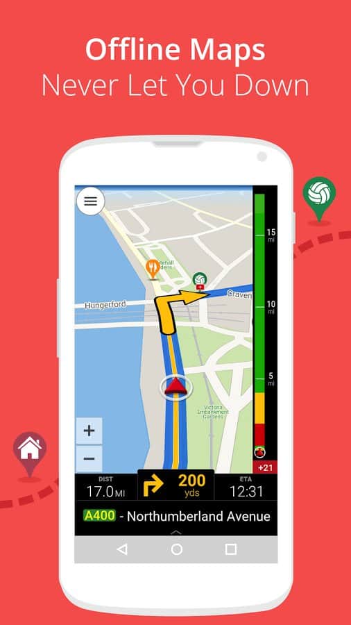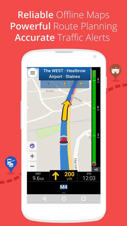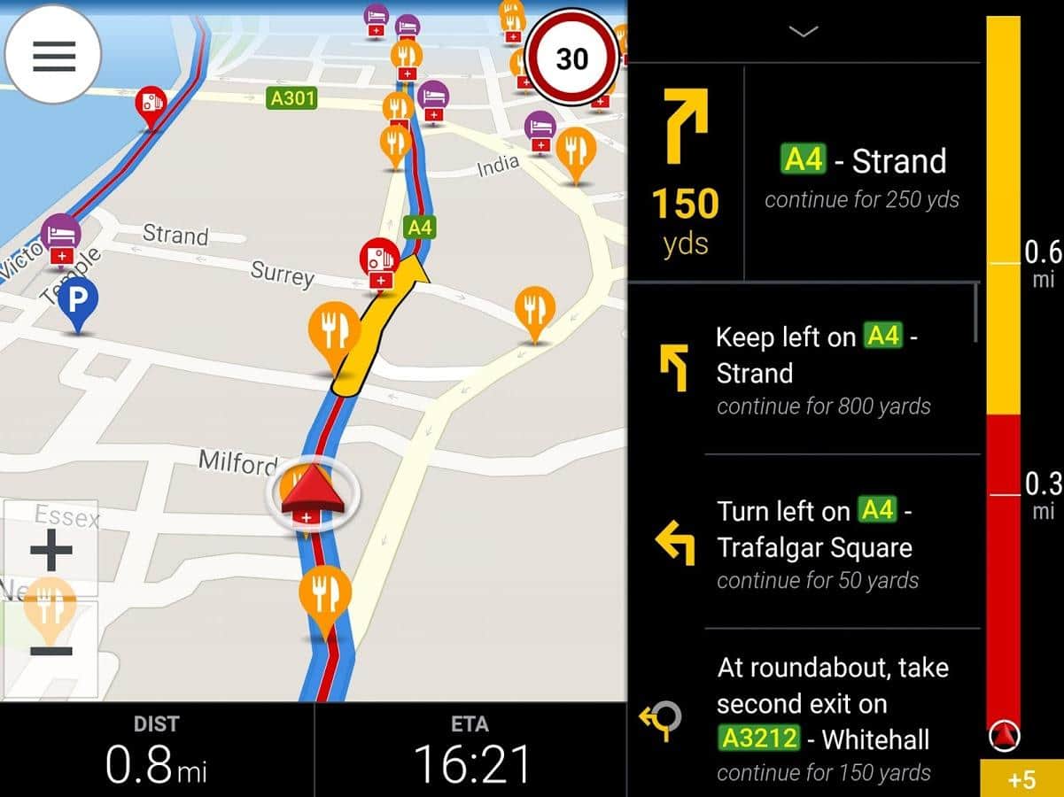 CoPilot – еще одна хорошая навигационная программа для андроид от разработчика ALK Technologies, с возможностью вычисления наиболее оптимального маршрута, режимом отображения 2D, 3D и "Безопасное вождение", голосовые подсказки (в том числе и на русском), интеграция с телефоном, позволяющая совершать звонок на POI, а также отправлять SMS со своими текущими координатами и многое, многое другое.