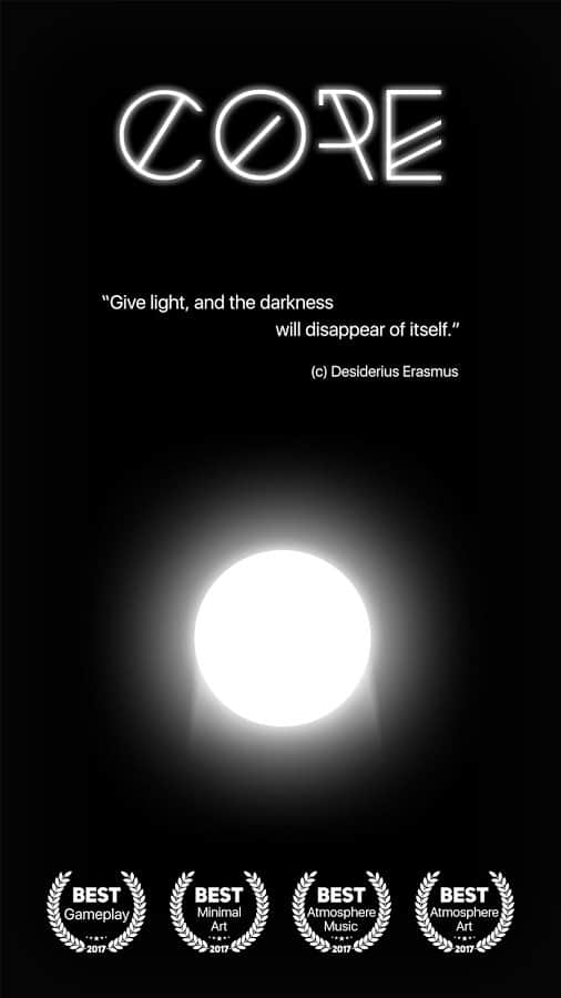 CORE - данная игра может показаться весьма простенькой и незаурядной, однако она выполнена в очень необычном и весьма сложном стиле. Задача будет весьма проста, нужно тапать по экрану что бы ваше ядро подпрыгивало вверх, поворачивать никуда не нужно, двигаться будет сам уровень, для вас главное огибать препятствия. В игре прекрасное звуковое сопровождение да и к тому же великолепная гармония света и тьмы.