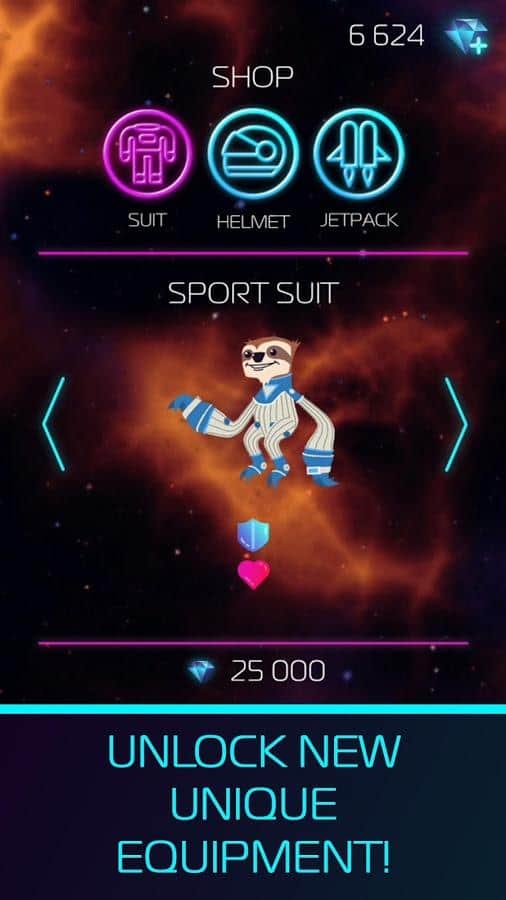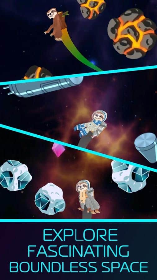 Cosmic Sloth – космический раннер на андроид, где вам необходимо управлять ленивцем. В этой игре вашей главной задачей будет пролететь как можно дальше, исследуя космическое пространство. По пути собирайте кристаллы и уворачивайтесь от многочисленных препятствий и преград, которые встретятся вам. Выполняйте поставленные миссии и получайте доступ к дополнительному снаряжению, которое поможет вашему герою продержаться как можно дольше в этой игре. Управление в игре очень простое нажимайте на правую или левую сторону экрана, чтобы направлять ленивца в ту или иную сторону. Игра порадует вас отличной физикой.