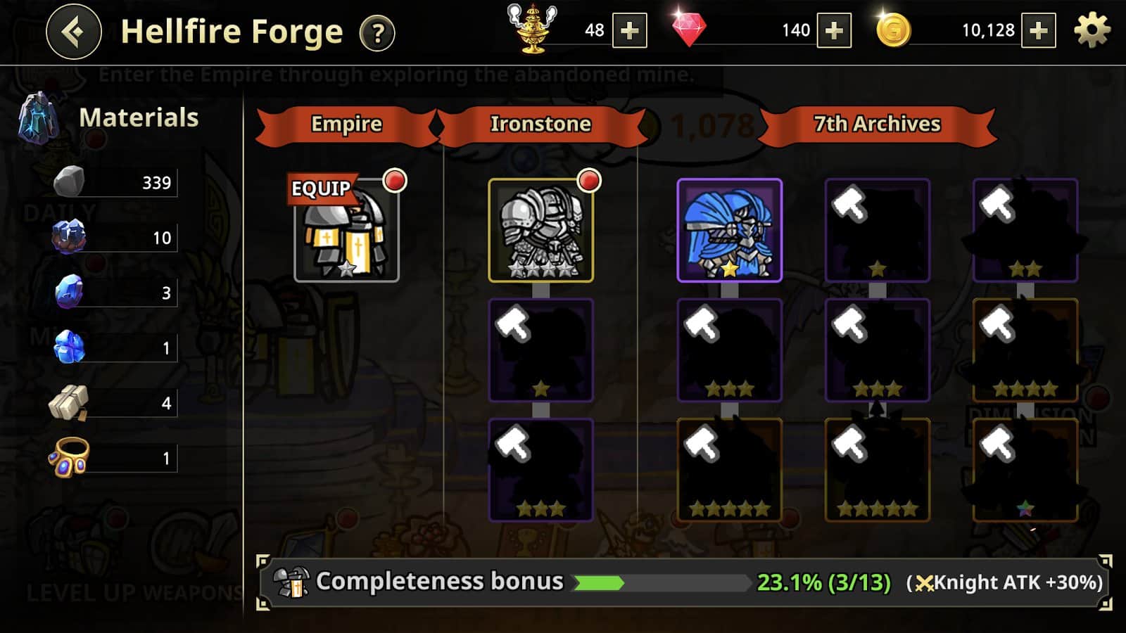 Развитие персонажа и оружия. Прокачивайте рыцаря, обучайте его пассивным навыкам и настраивайте оружие для оптимальной боевой эффективности. Вас ждет множество стратегических возможностей.