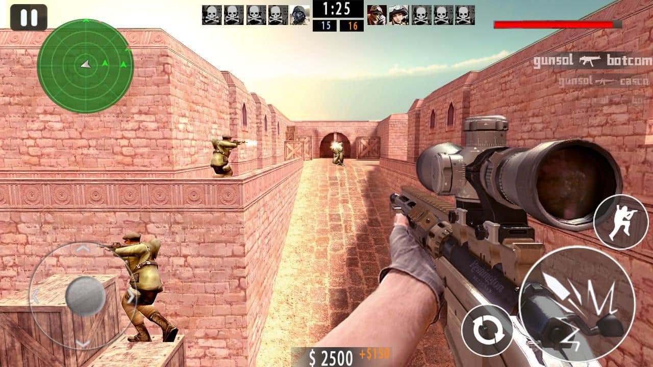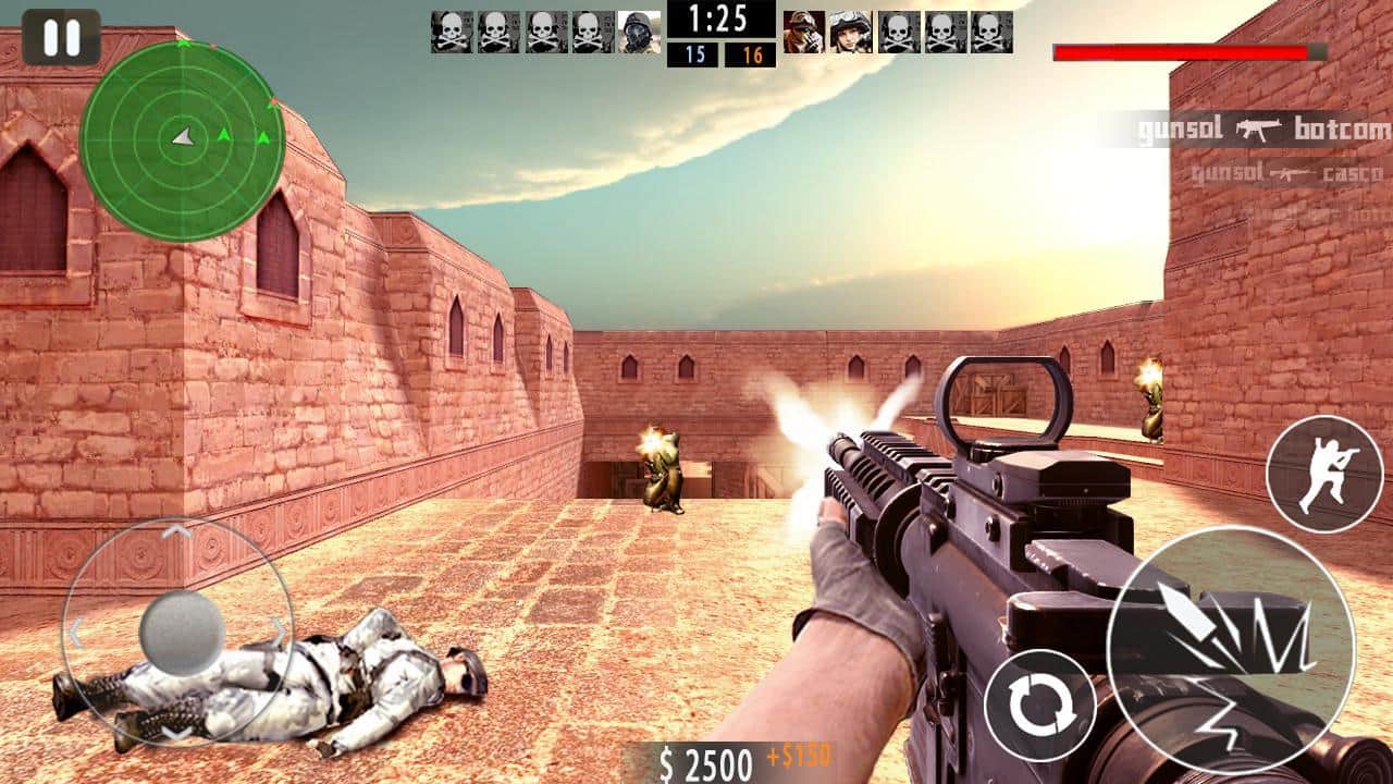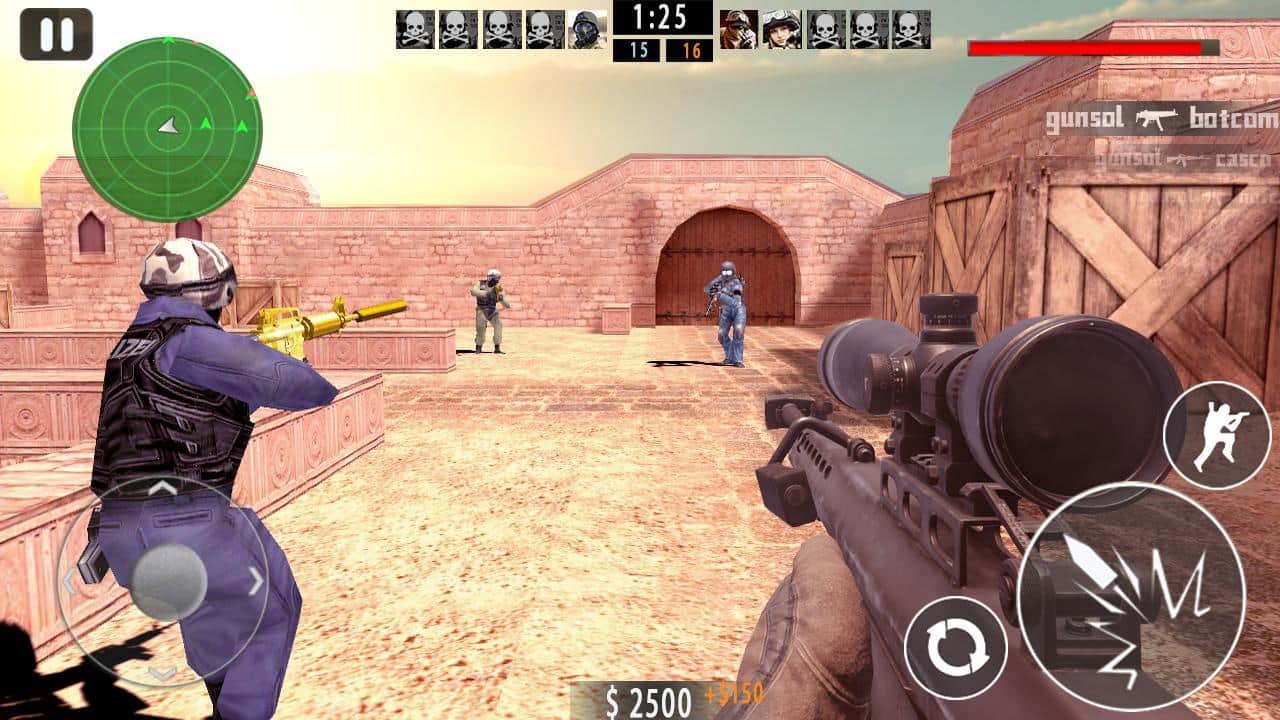 Counter Shoot FPS - хотите побороться за правду и свободу, тогда эта игра именно для вас. Это не мультиплеерный шутер, однако боты здесь так же легко смогут снести вам голову. Карты были взяты из всем известной игры, и рассказывать о ней не будем. Ваша же задача выполнять одну из двух задач, одна из них это уничтожить всех противников а вторая обезвреживать взрывоопасные устройства.