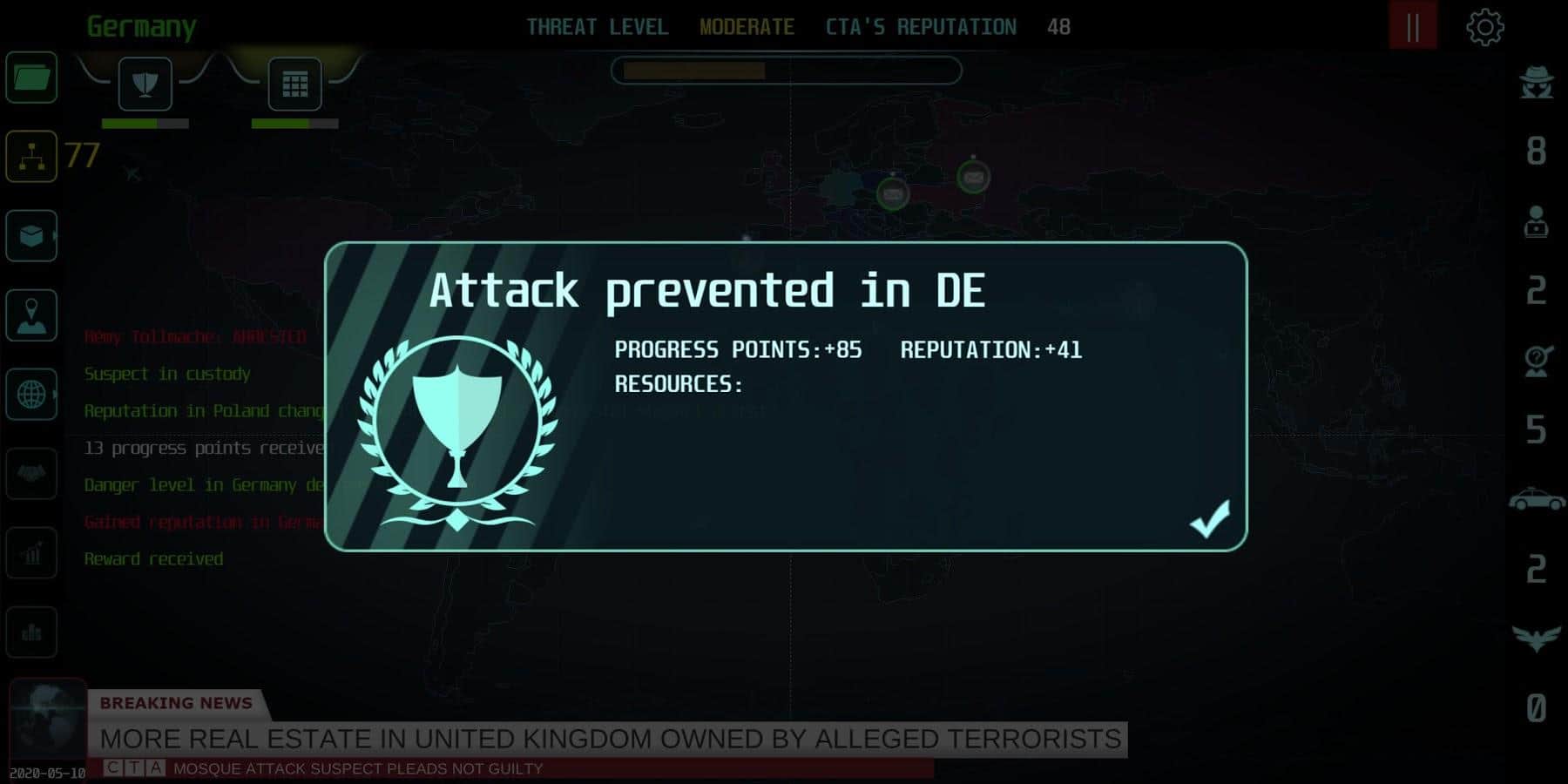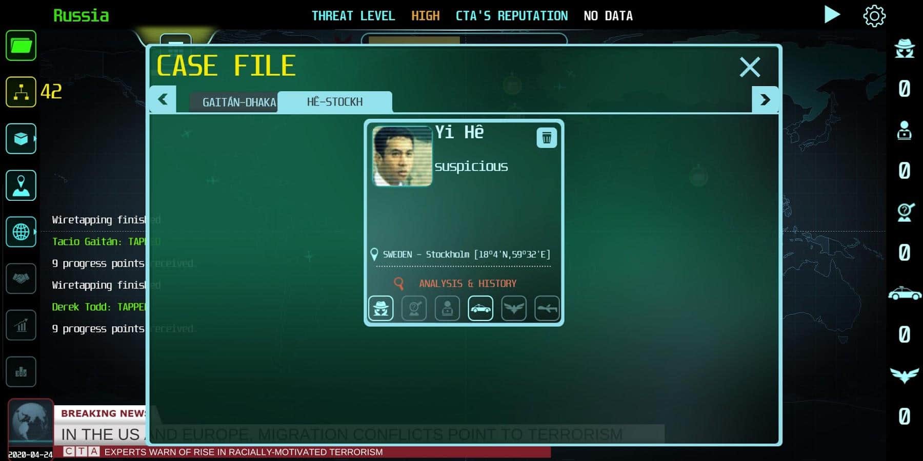 Counter Terrorist Agency – это стратегия в реальном времени с элементами менеджмента и симулятора. В этой игре вы будете руководить передовой организацией, бороться с международным терроризмом и предотвращать теракты по всему миру. Находите улики, используя современные приемы разведки, прослушивайте звонки, читайте тайные переписки, допрашивайте подозреваемых, предотвращайте угрозы и уничтожайте террористические организации. Вам, как главе агентства, порой придется принимать сложные решения. Сможете ли вы пойти на жертву, чтобы предотвратить главный теракт? Не позволяйте себе оказаться между молотом и наковальней.