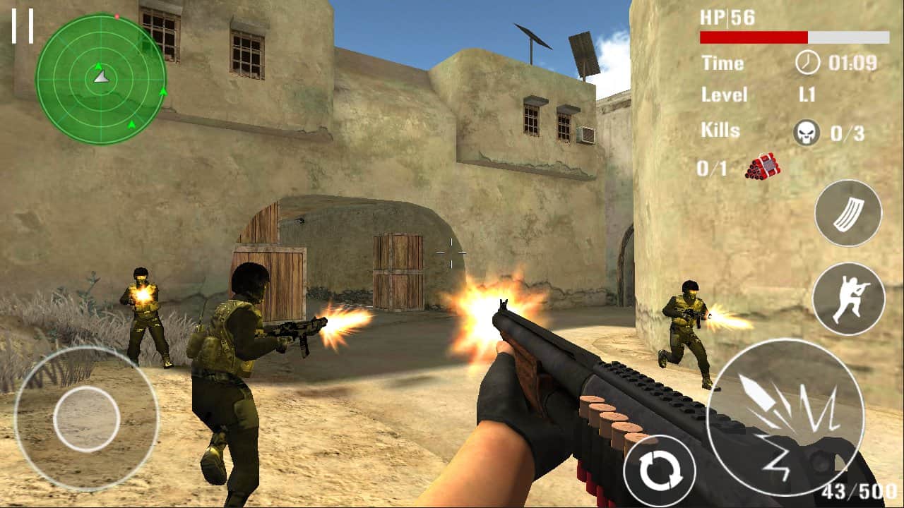Counter Terrorist Shoot – возьмите в руки снайперскую винтовку и пройдите по многочисленным локациям игры, уничтожая террористов. В этой игре вы сможете почувствовать себя бойцом элитного отряда, которому оставили цель уничтожить всех террористов. Незаметно перемещайтесь по полю боя и ведите непрерывный огонь по врагу. Используйте различные укрытия и здания, чтобы укрыться от прицельного огня противника. Используйте радар чтобы выявить местонахождение врага и уничтожить. Эта игра порадует вас большим выбором разнообразного оружия, которое вы сможете проверить в действии. Наслаждайтесь удобным управлением и игрой от первого лица.