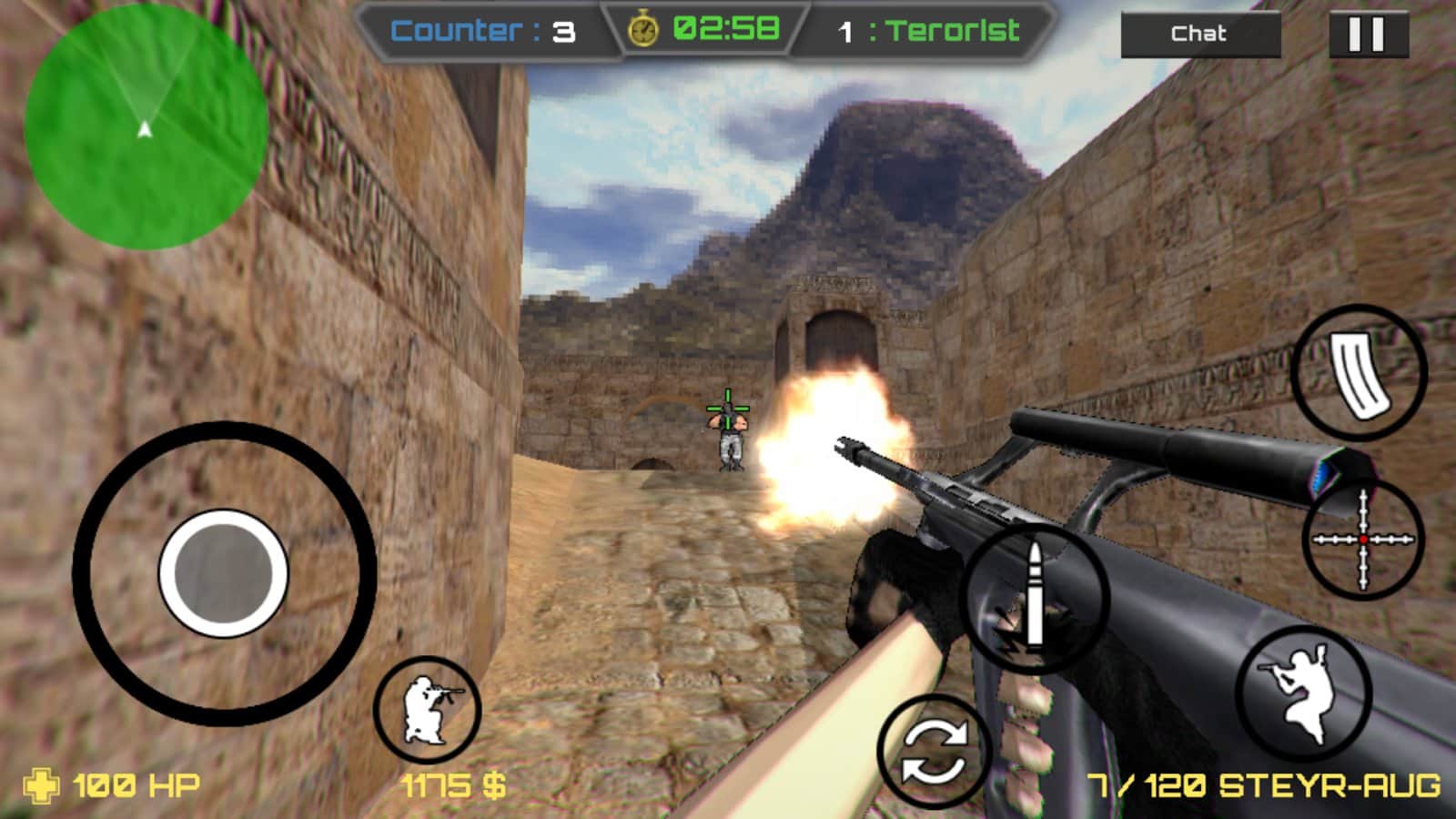 Counter Terrorist: Strike War – многопользовательский шутер от первого лица на андроид, где вы будете вести войну против террористов. Возьмите в руки оружие и перемещайтесь по разнообразным локациям игры и ведите огонь по врагам. В игре представлено огромное количество различного оружия, начиная от пулеметов и заканчивая пистолетами и снайперскими винтовками. Перемещайтесь по пяти различным картам и выполняйте поставленные миссии и задачи, играя против других игроков и старайтесь, чтобы вашего солдата не уничтожили. За каждого уничтоженного врага вы будете получать монетки, которые сможете потратить на покупку нового оружия и боеприпасов.