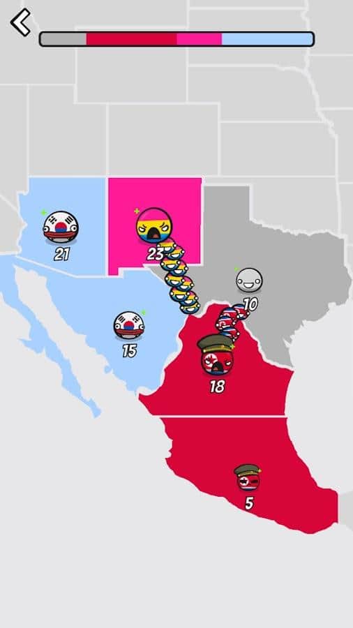Country Balls Io: Battle Arena - Представьте, что мир — это арена, а каждая страна на нем — это определенный игрок. У вас есть возможность выбрать любую страну и начать продвигать её военную деятельность так, чтобы другие страны ни в коем случае не заполучили вашу территорию и не являли для вас особой угрозы. Тщательно продумывайте стратегии по захвату других стран, четко следуйте поставленным целям и старайтесь всегда перехитрить противников, иначе все пойдет не по плану. Расширяйте количество армии, улучшайте навыки каждого солдата и запасайтесь мощным оружием.